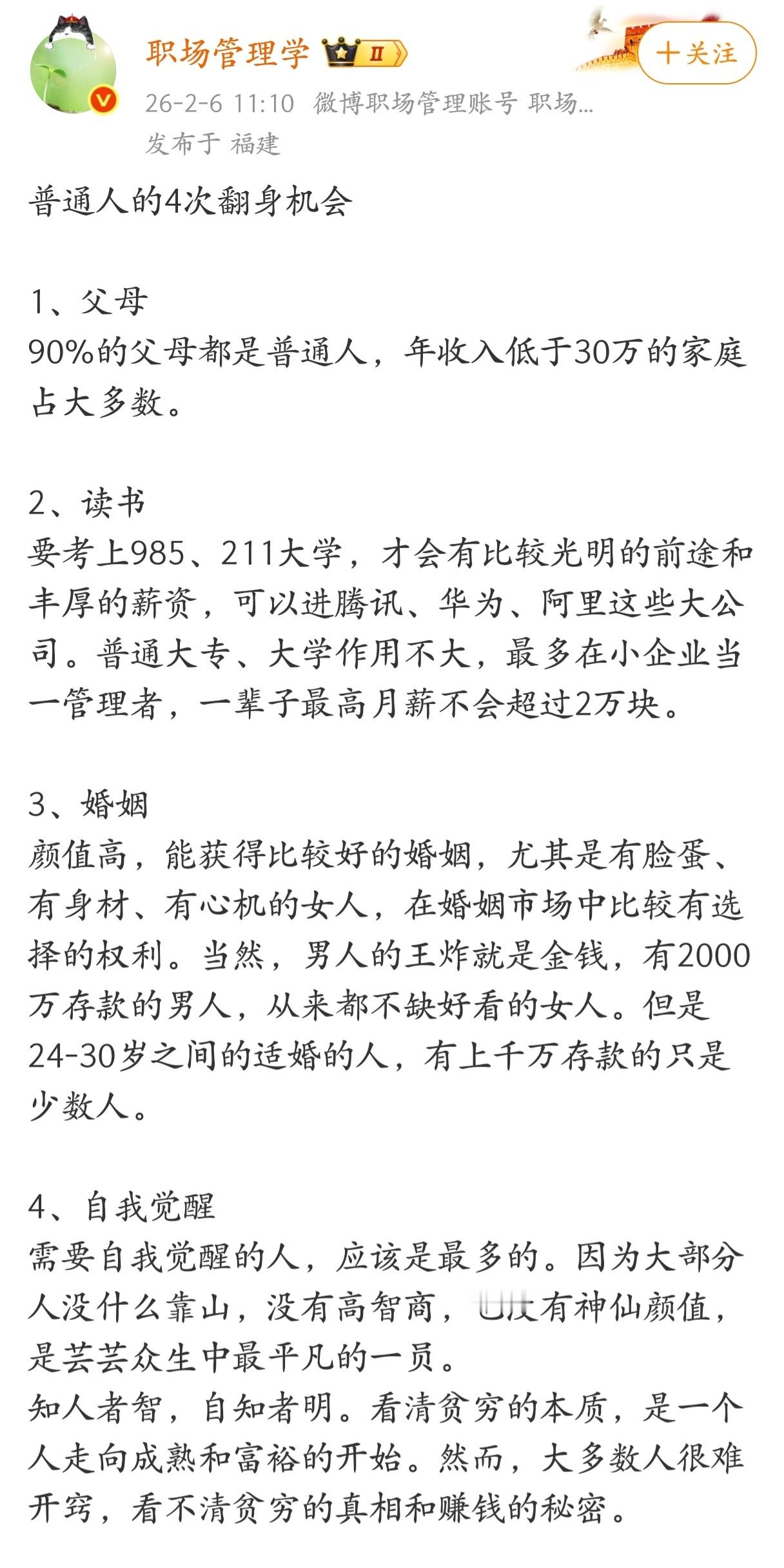 普通人的四次翻身机会。