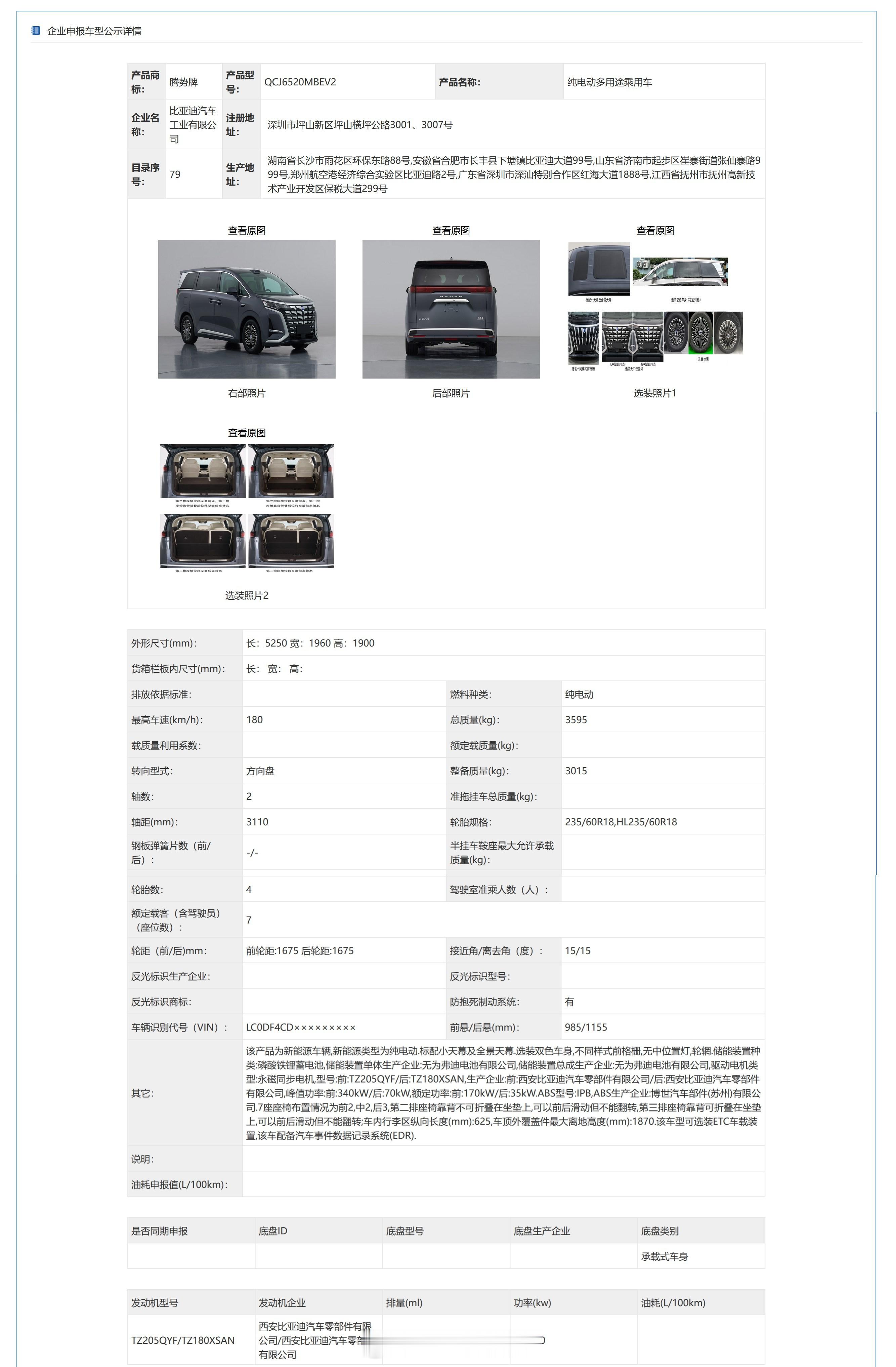 工信部车展 第404批新车之腾势d9 纯电版。公示的两个车型分别是QCJ6520MBEV2和QCJ6520MBEV3。