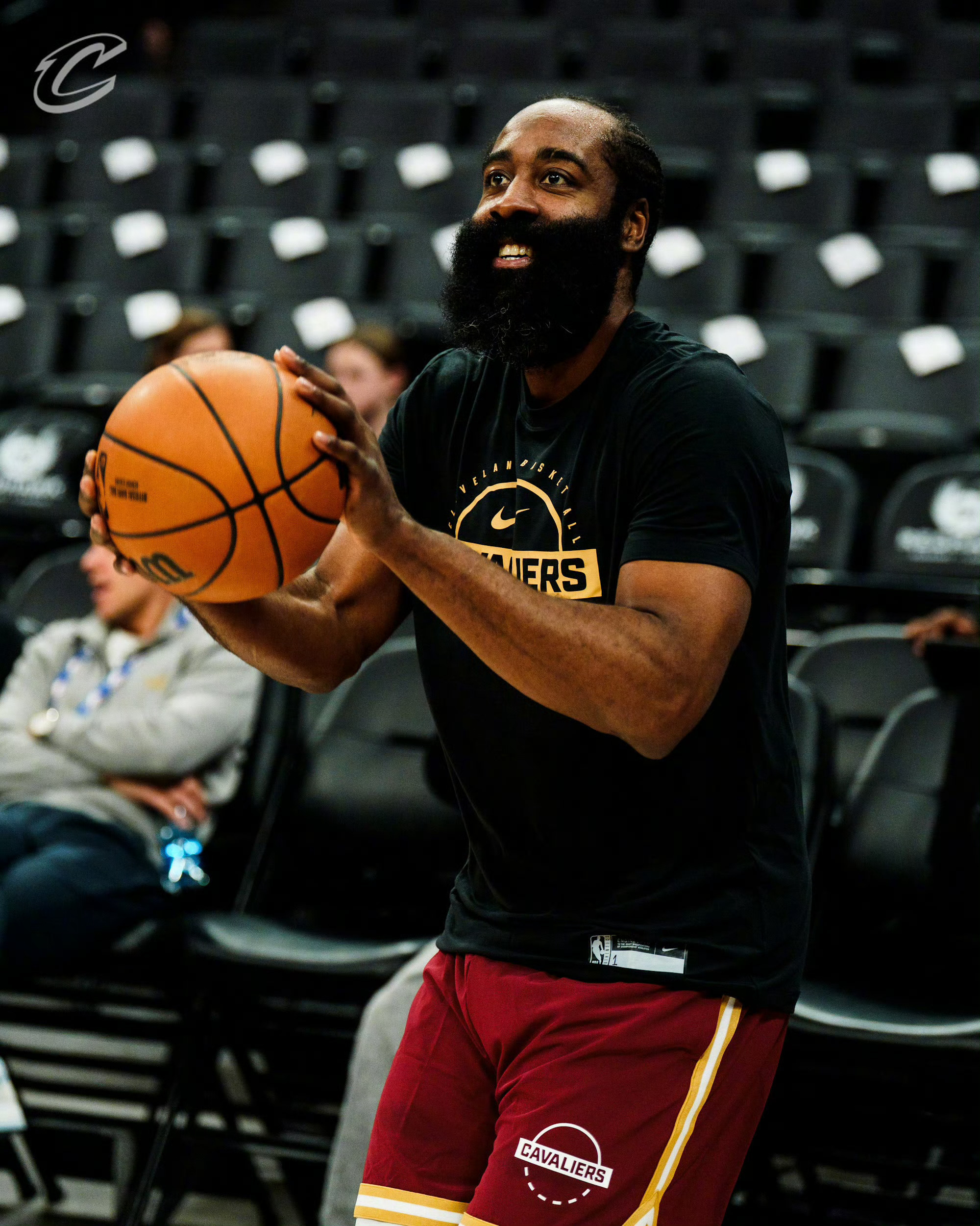 骑士这首发阵容可够豪华的,除了泰森,其他4个人都进过全明星!1、哈登——36