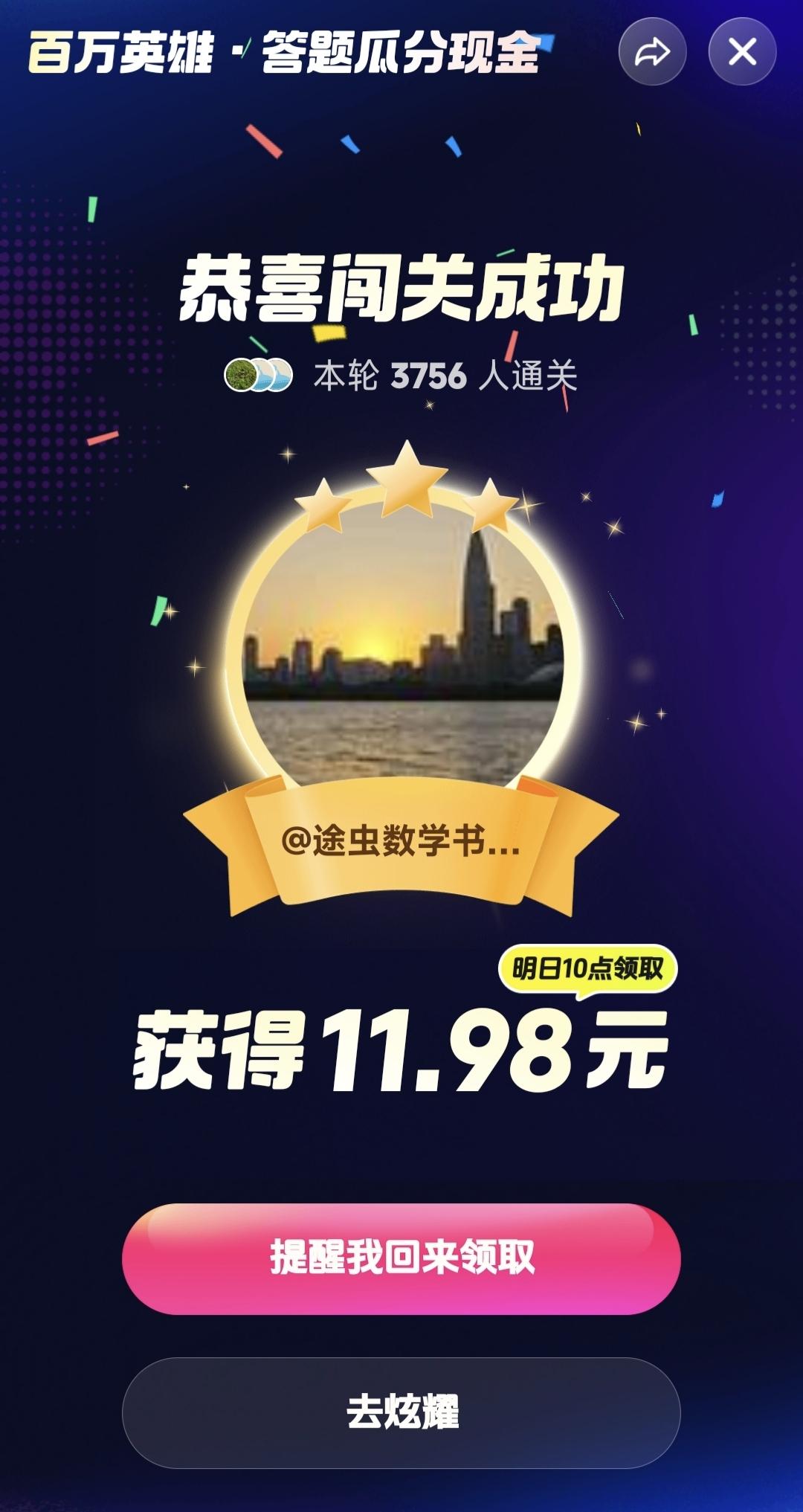 这个要炫耀一下哈[大笑][大笑],今天的头条百万英雄答题大闯关,60万英雄闯关,3756人通关,最后一关难倒很多英雄汉。这个百万英雄大闯关挺有意思的,其实就是百科知识大闯关,天文地理语文数学啥都有。