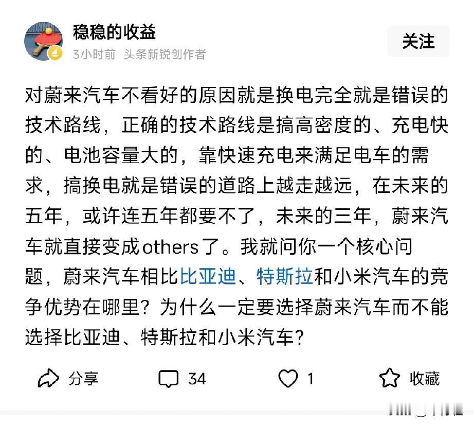 是不是所有反对蔚来换电的人 都有一种智力障碍? 以为蔚来只能换电不能充电? ……