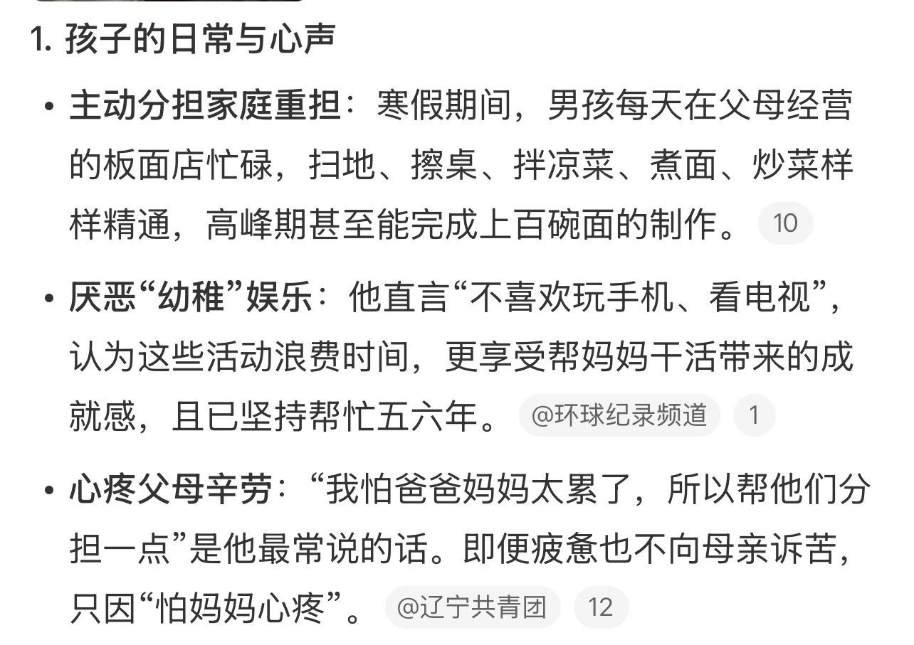 面对镜头,他直言只是不想爸妈太辛苦,想替他们多分担一点。