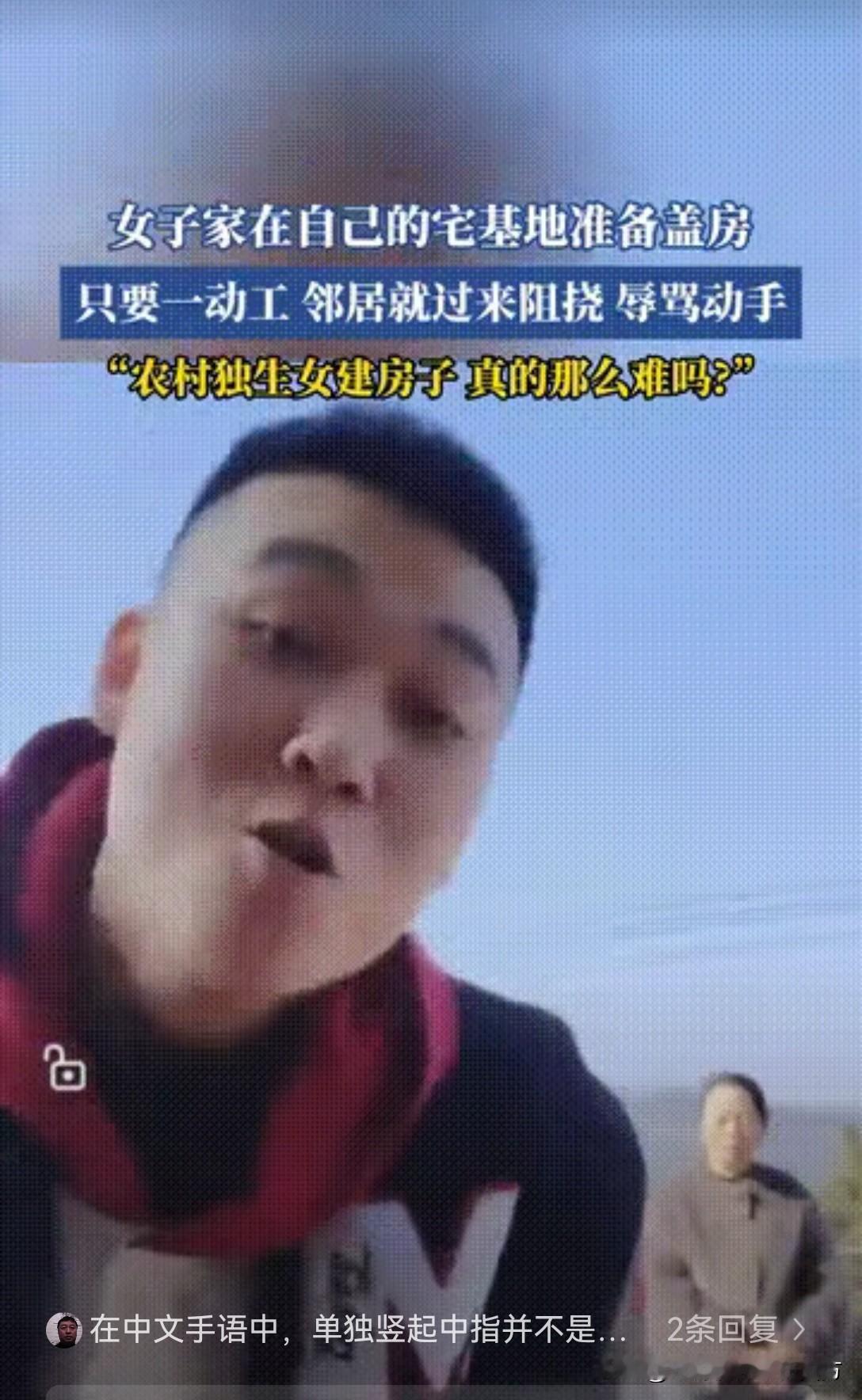 独生女宅基地建房 被邻居竖中指挑衅, 农村耍横的无赖真膈应! 自家合法宅基