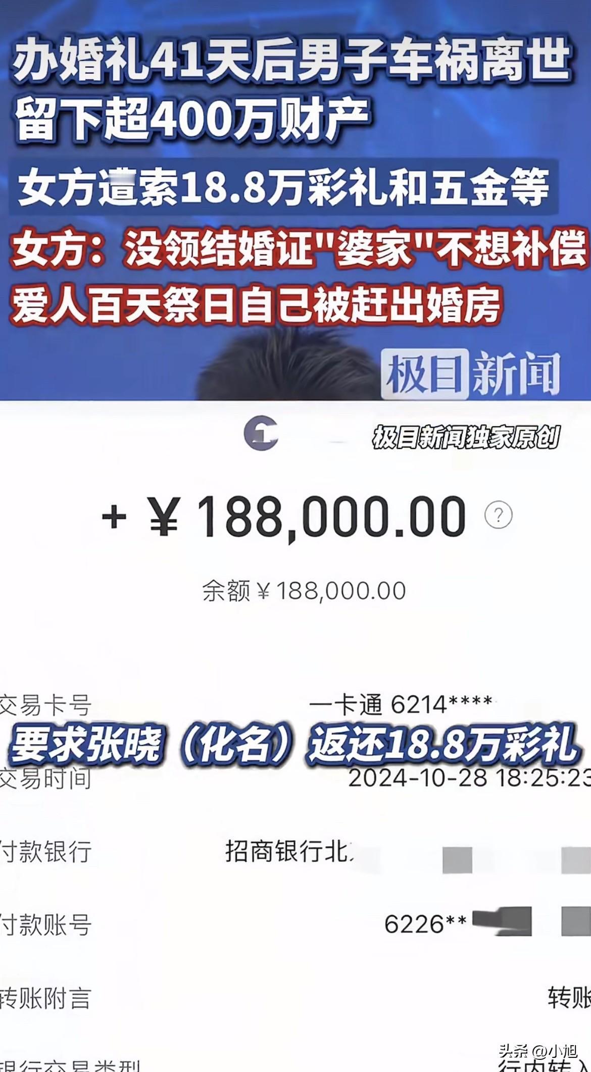真是服了,婚礼办了,彩礼给了,人突然没了,四百多万遗产和“妻子”一毛钱关系没有?