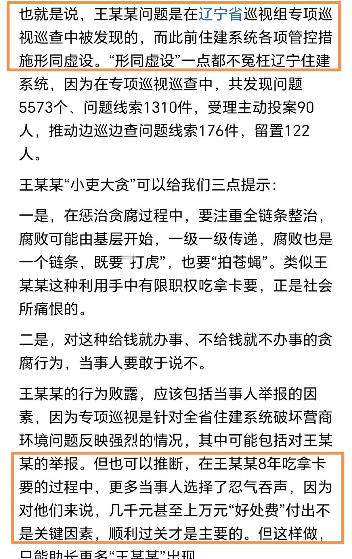 八年,贪污1600多万元,还只是个辽宁省住建厅负责接件、转办政务大厅工作人员,不是什么手握实权的、职位带“长”的官员。 如果不是被省巡视组巡查出来,靠住建系统内部自查自纠根本不会发现,其内部系统检查纠错机制堪称形同虚设。 网上都说东北人办事喜欢花钱找关系办、如果靠正经渠道办成反而不高兴,还有“投资不过山海关”的说法。由这个现在这个小吏巨贪的案件可见一斑。 官员贪污 官僚贪腐 中国贪污腐败 抓腐败 查腐败