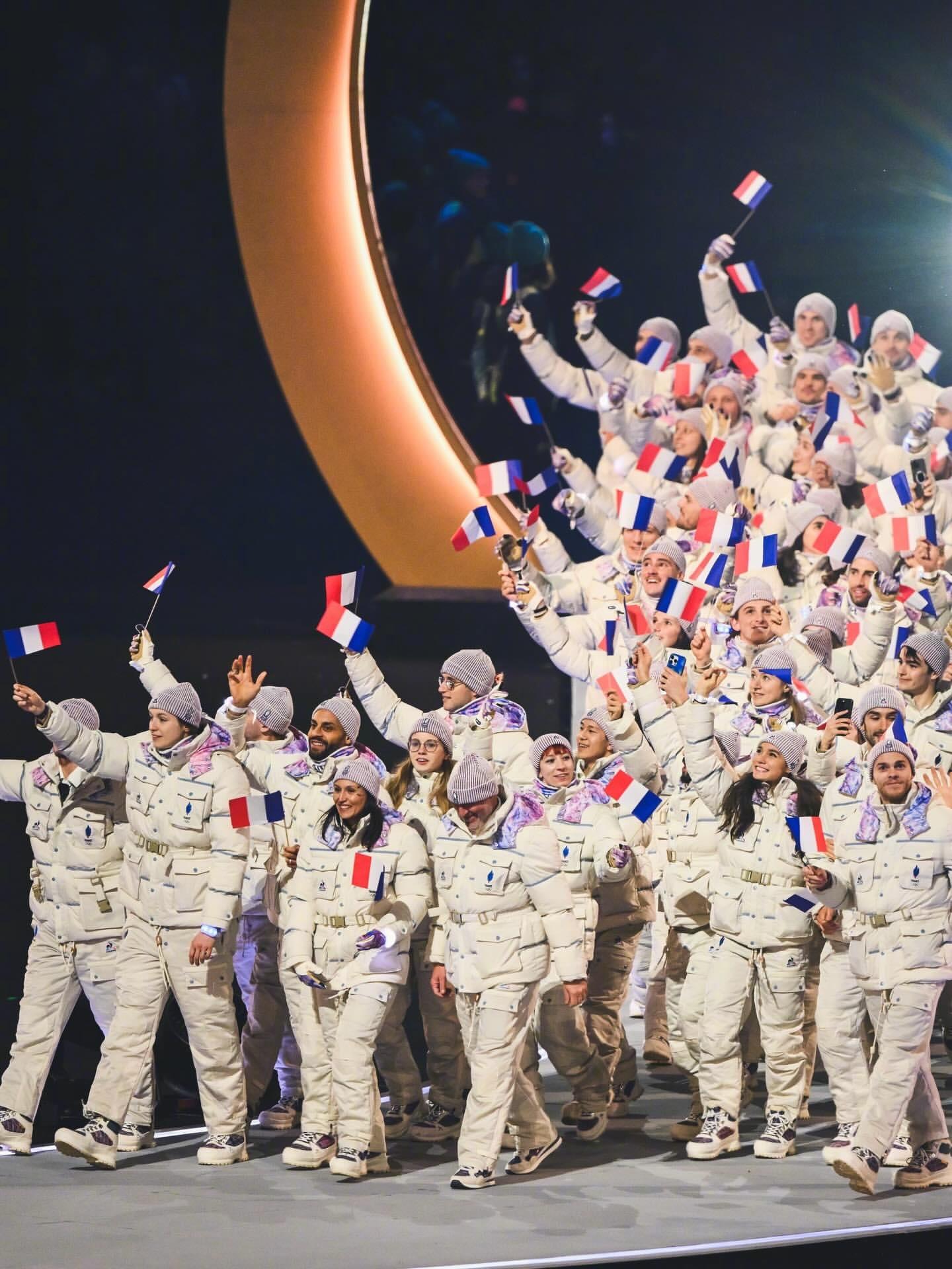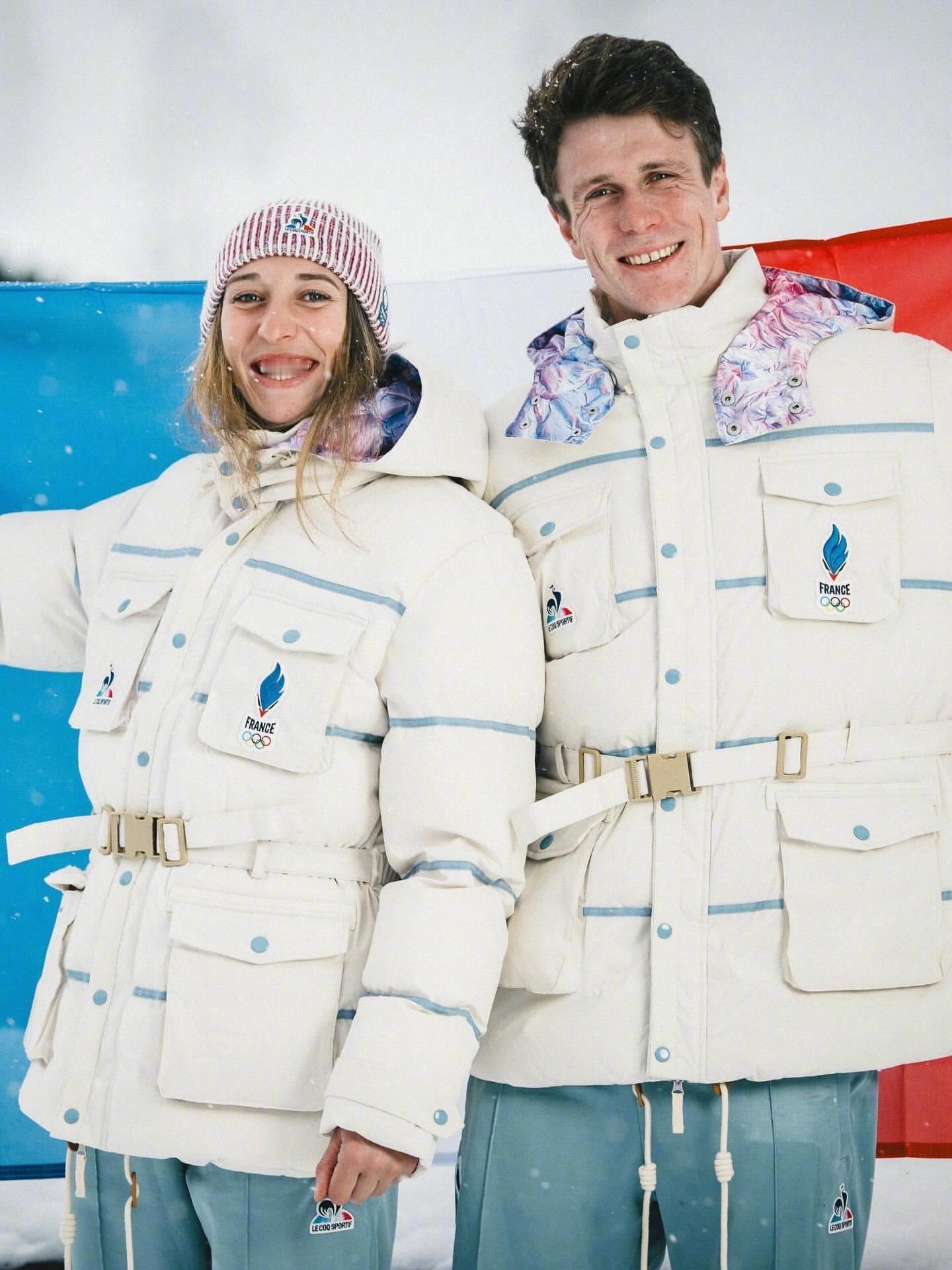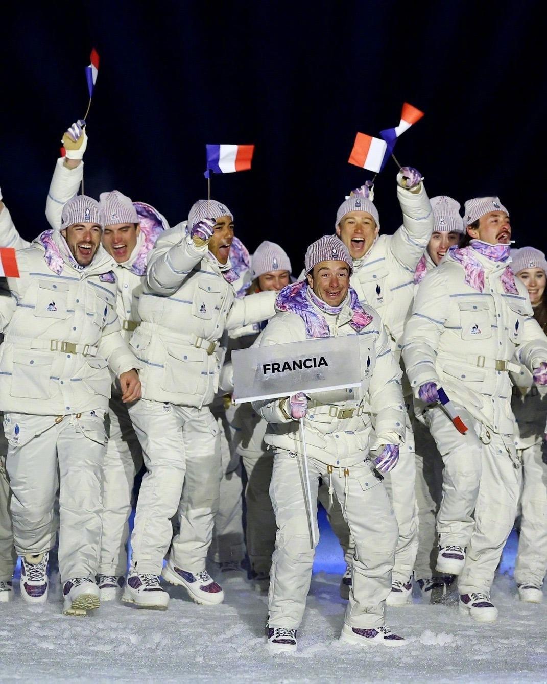 2026米兰冬奥会,法国队🇫🇷的服装由法国本土品牌Le Coq Sportif 打造,设计特色淡冰蓝、白色和法国三色(蓝/白/红) 为主色调,呼应冬季山脉意象与法兰西传统。 服饰分为 Village(村落日常)、Interview(采访)和 Podium(领奖台) 三个系列,对不同场合有不同风格。 包括轻便外套、宽松裤装、拼色针织衫等。日常着装的设计都很不错,配色很法国,但开幕式的这套,从现场成片看是真不好看,衣服上的元素太多,远看像太空服!这件外套售价330多欧元!冬奥会时尚图鉴冬奥观赛团