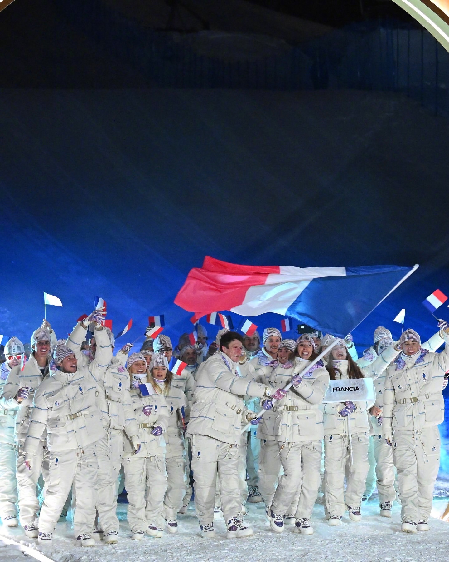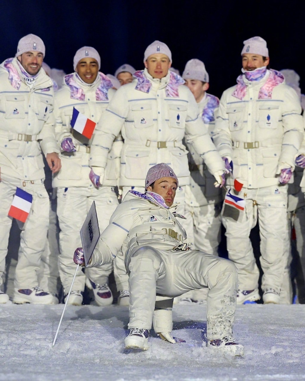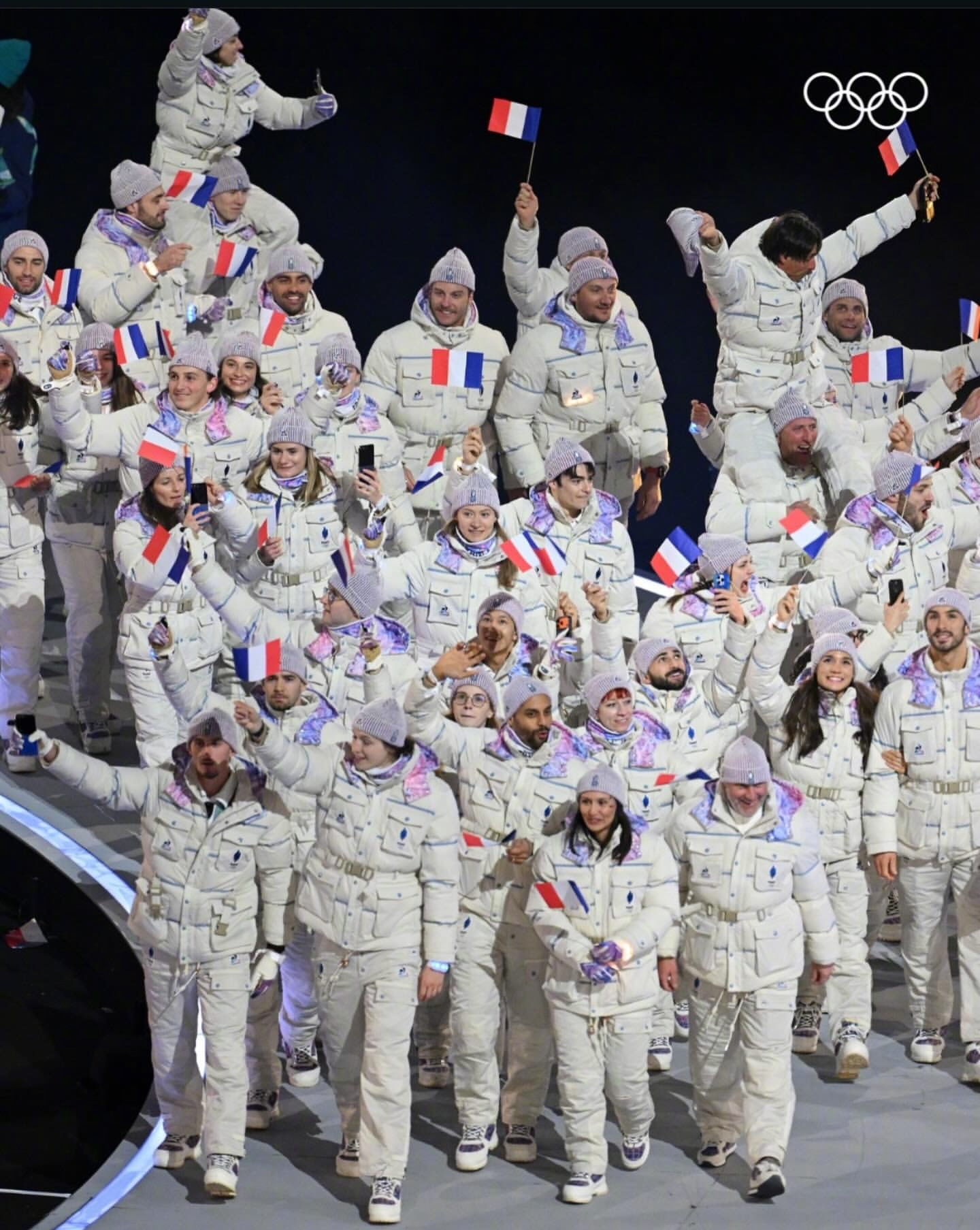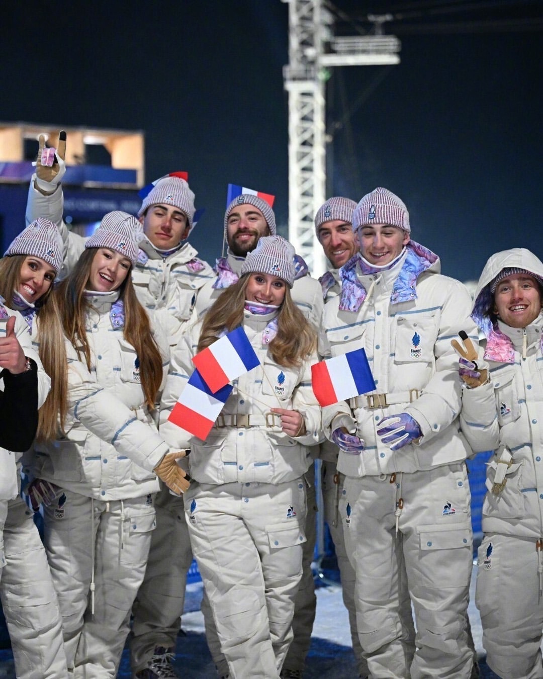 2026米兰冬奥会,法国队🇫🇷的服装由法国本土品牌Le Coq Sportif 打造,设计特色淡冰蓝、白色和法国三色(蓝/白/红) 为主色调,呼应冬季山脉意象与法兰西传统。 服饰分为 Village(村落日常)、Interview(采访)和 Podium(领奖台) 三个系列,对不同场合有不同风格。 包括轻便外套、宽松裤装、拼色针织衫等。日常着装的设计都很不错,配色很法国,但开幕式的这套,从现场成片看是真不好看,衣服上的元素太多,远看像太空服!这件外套售价330多欧元!冬奥会时尚图鉴冬奥观赛团