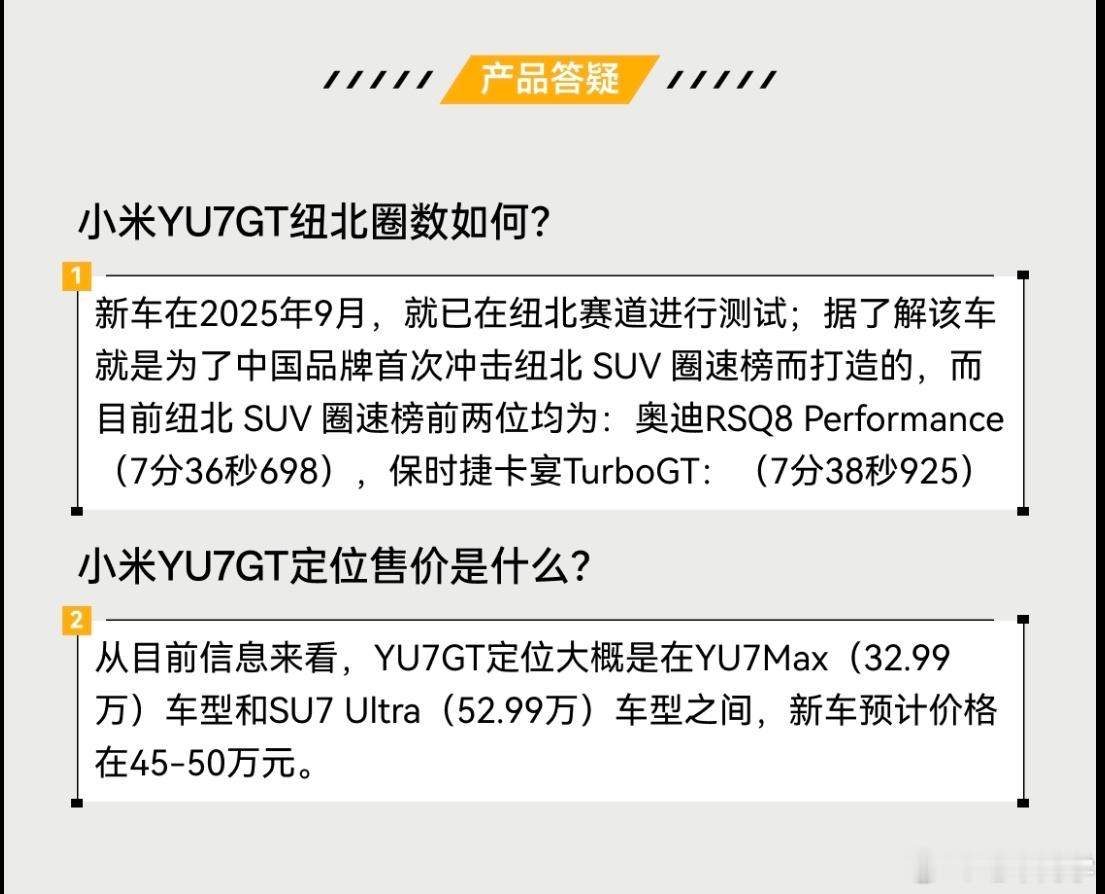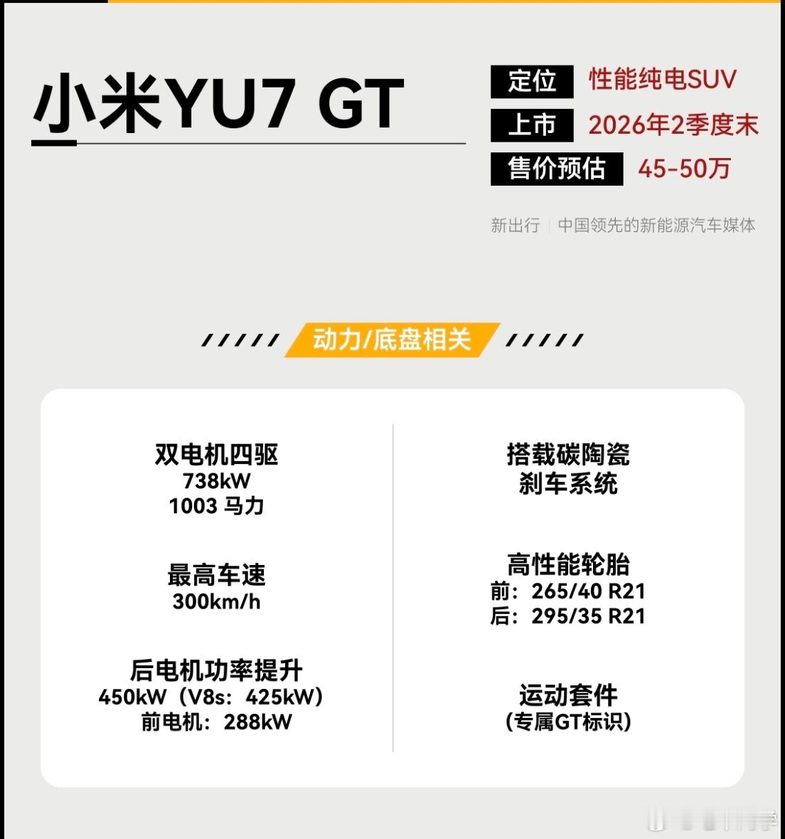 一图看懂小米YU7 GT动力参数太炸裂了……还有碳陶瓷刹车片儿。