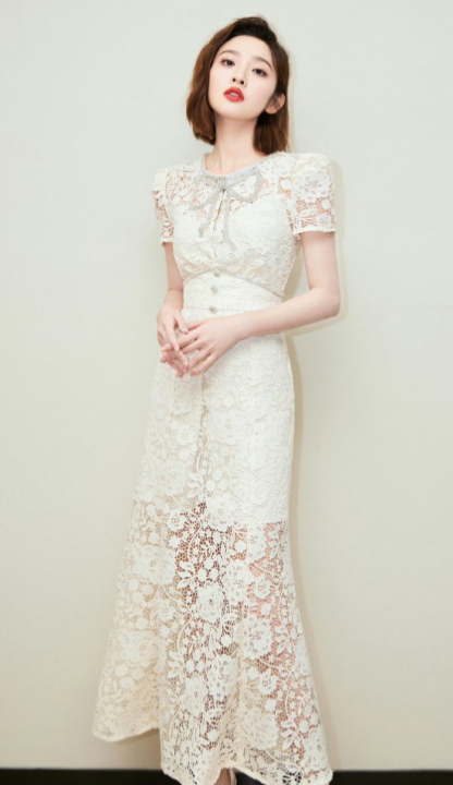 艺昕蕾丝白裙优雅谢幕,这笑容治愈力满分