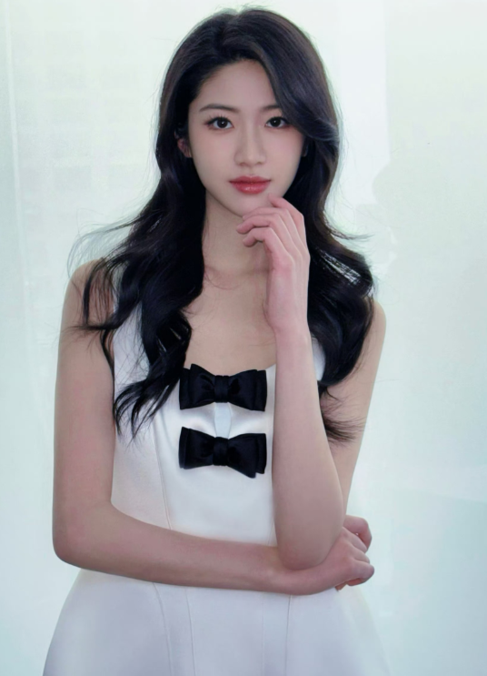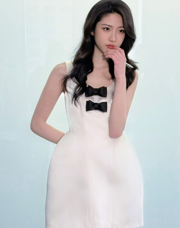 涵之小姐姐真是太美啦,白色调配上精致的撞色领结,完美地衬托出她的清甜气质