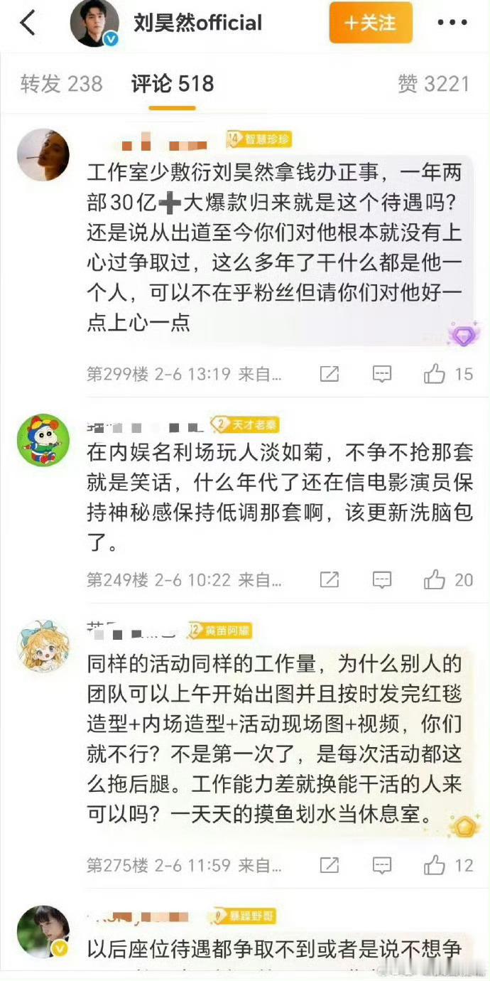 刘昊然粉丝因为微博之夜位置不好,在维权。