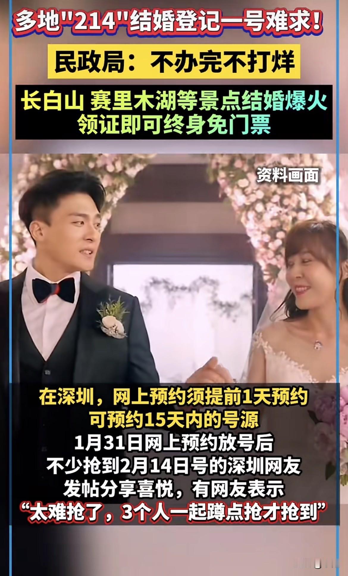 抢疯了!2月14日结婚登记预约,深圳全城秒光。不止深圳,成都、江苏多地,线上名额