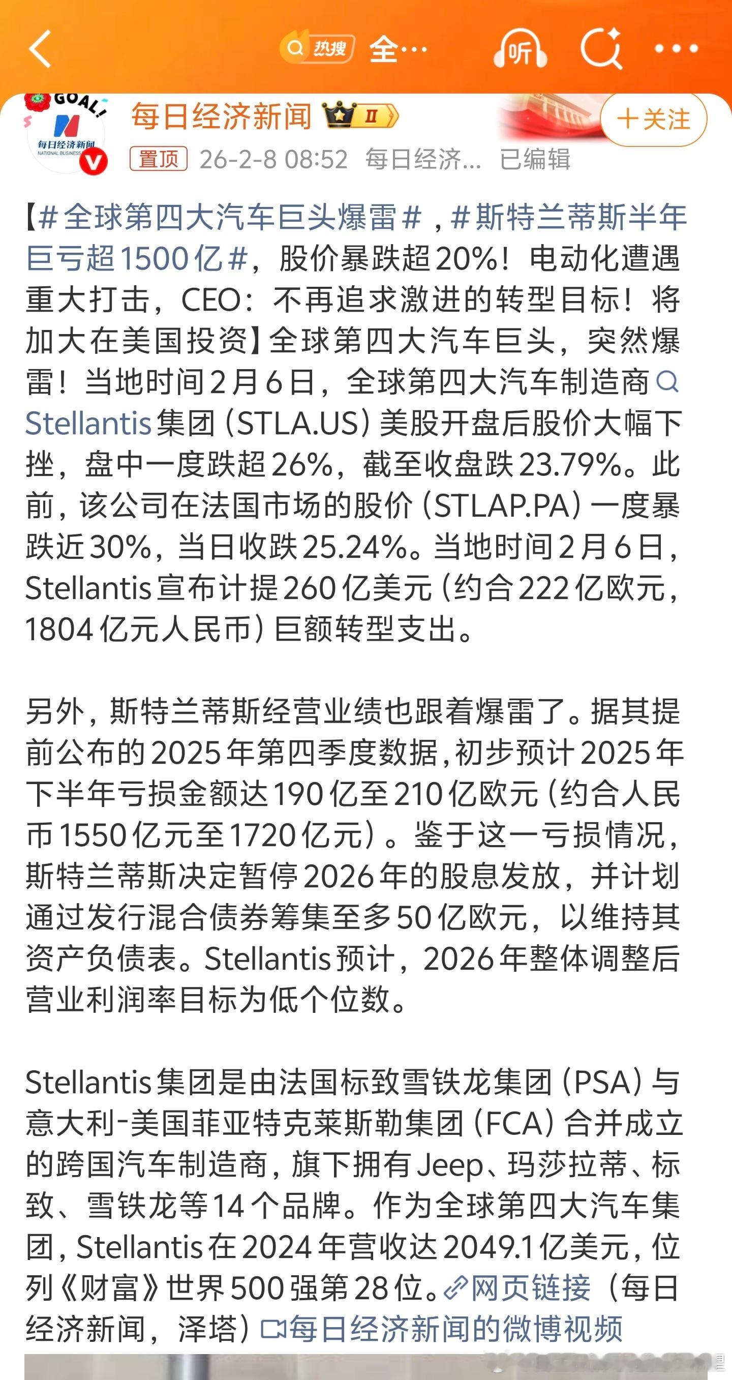 全球第四大汽车巨头爆雷哈哈哈 恒大来啦原来魏总说的是斯特兰蒂斯啊眼光真的毒辣 格局真的大以前有些观众是误会魏总了,以为他说的是国内同行,其实魏总说的是国际同行。