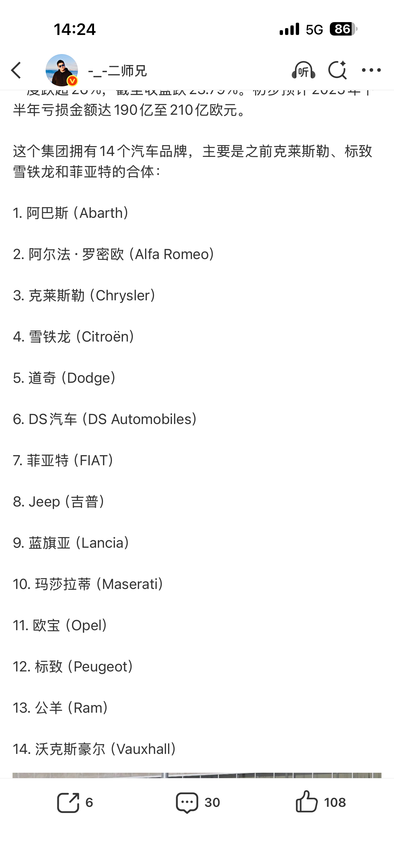 全球第四大汽车巨头爆雷我看了下师兄发的,目测好像它家14个品牌都没有“触电”?对