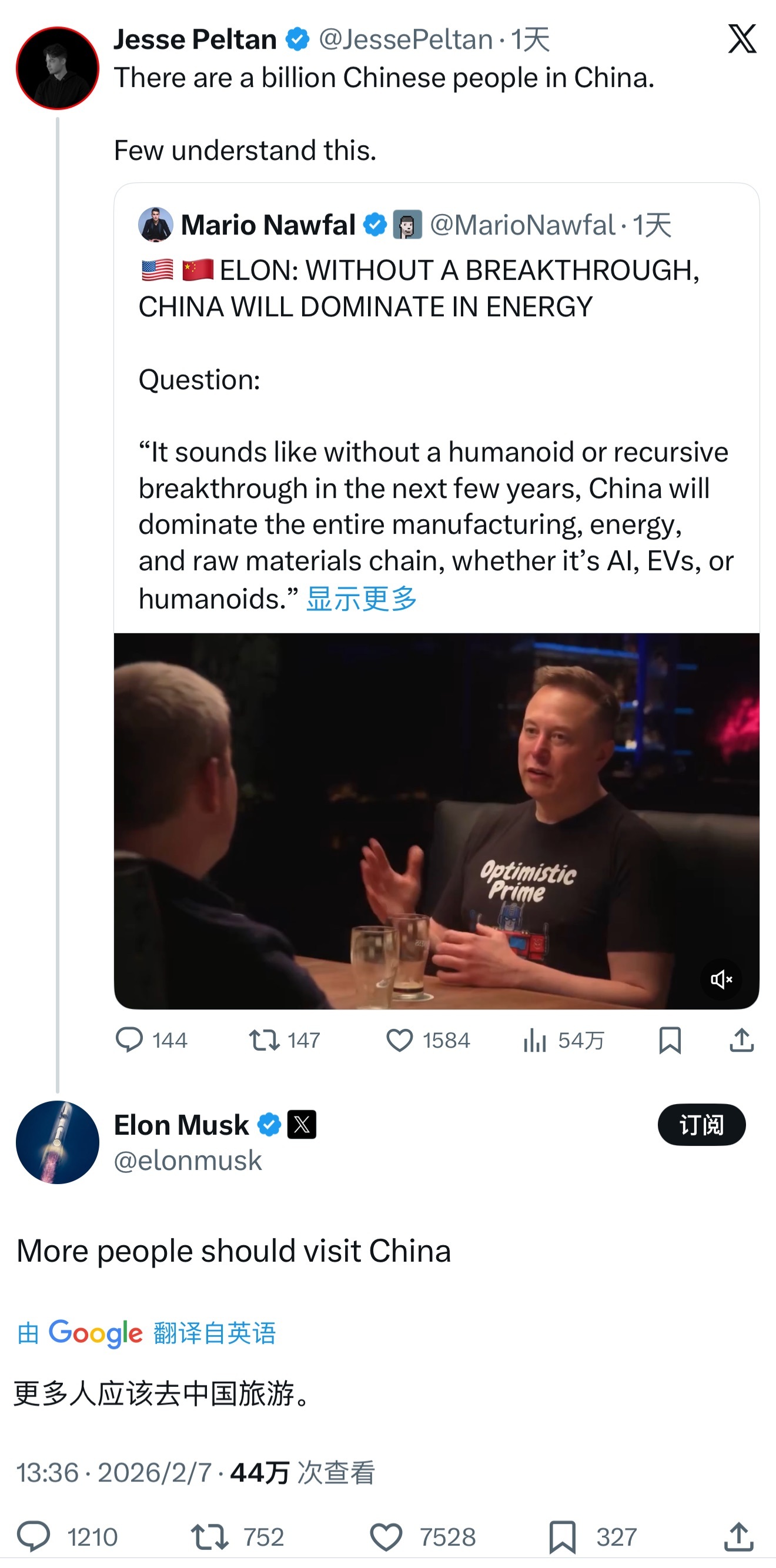马斯克呼吁人们多去中国旅游