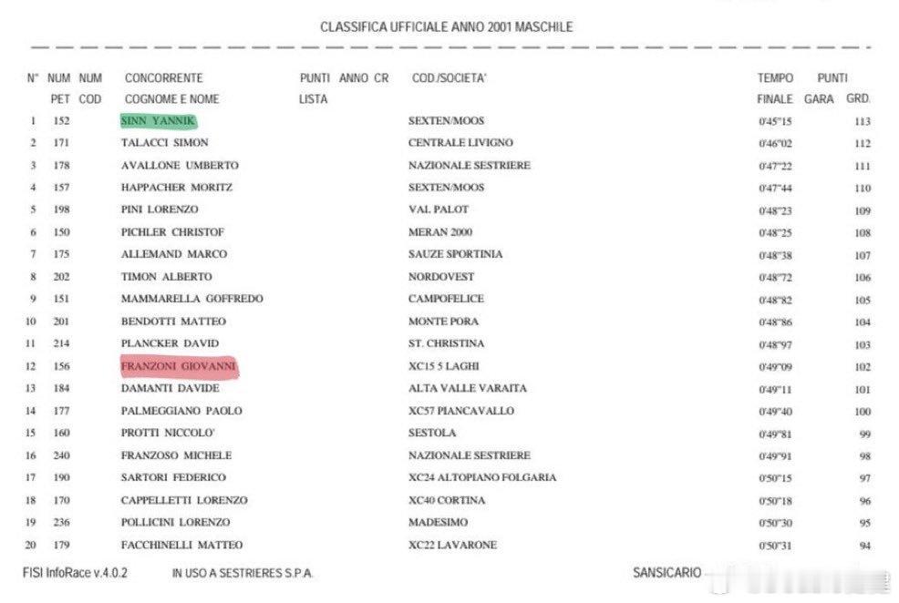 2009年4月:辛纳赢得了一场国内滑雪比赛冠军,Giovanni Franzoni获得第12名。2026年2月:Giovanni Franzoni在米兰冬奥会 上获得银牌。如果辛纳不打网球,是不是可以争取下滑雪奥运冠军?网球冠军辛纳曾是滑雪冠军全民聊冬奥