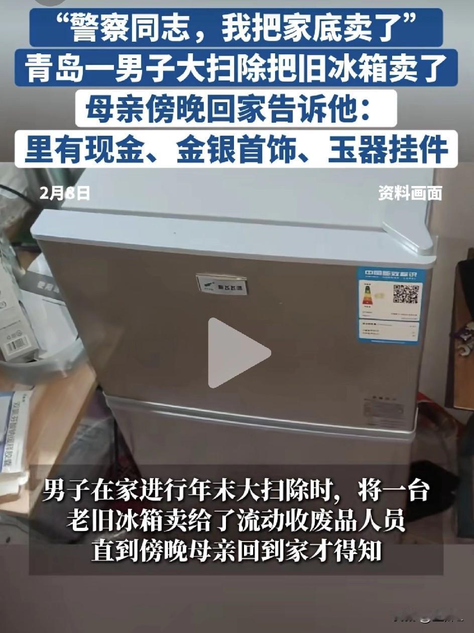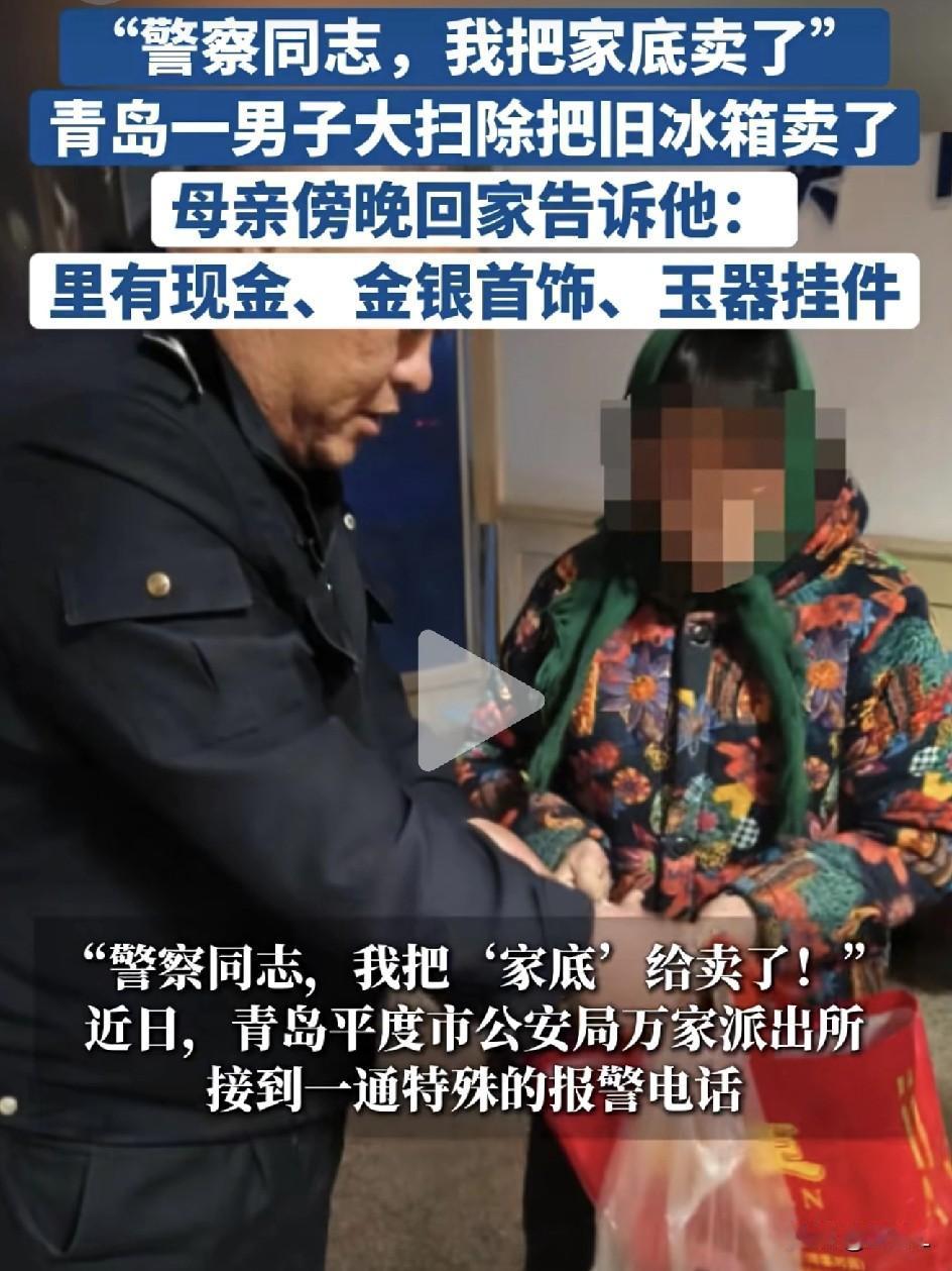 大扫除,卖旧冰箱居然卖了老妈的5万“家底”!老妈一句“我把家底卖了”吓傻儿子! 春节大扫除的杀伤力有多大?有人扫出童年奖状,有人翻出过期情书,但青岛平度这位张先生,直接把自己家的“移动金库”给端了! 前阵子他大扫除干劲十足,看见家里旧冰箱大手一挥:“卖了!”收废品的大哥乐呵呵拉走,张先生还觉得为环保做了贡献。 结果傍晚老妈回家,一听冰箱没了,当场瞳孔地震:“儿啊……冰箱里藏着全家家底啊!” 原来那台旧冰箱根本不是普通家电——它是老妈的“钢铁保险箱”!里面塞着现金、金银首饰、玉器挂件,零零总总价值5万多。 老妈捂胸口:“我藏得那么隐蔽,你怎么就给卖了呢?!” 张先生瞬间腿软,一个电话飙到派出所:“警察同志!我把家底卖了!!”接警民警都听乐了:“您这家底……还挺别致。” 民警火速出动,一边安慰快哭了的母子俩,一边变身“刑侦专家”:回收大叔长啥样?开啥车?往哪去了?调监控、查路线,直奔南村镇废品站。 收废品的大哥看见民警找来也懵了:“这冰箱有啥特别的?”直到民警打开冰箱夹层——好家伙,金光闪闪!大哥赶紧摆手:“我可一点没动!这谁敢收啊!” 从报警到找回,不到5小时。捧着失而复得的“冰箱宝藏”,张先生和老妈激动得快给民警鞠躬。 第二天送锦旗时,民警还开玩笑:“这可能是咱所里接过的‘含金量’最高报案。” 而这已经不是第一次了——上海有位阿姨把金项链藏旧衣服里,女儿直接连衣服带金子扔进垃圾桶;还有人在旧棉被里缝存折,在老电视后壳塞现金……网友纷纷吐槽:“爸妈的藏宝地图,比海盗的还难懂!” 马上过年了,温馨提示各位大扫除的“家庭勇士”:扔旧货前,务必对着爹妈喊三声——“这里面有宝藏吗?” 毕竟你扔的可能不是垃圾,是你家的“后半生”啊! 你家爸妈有过什么绝密藏宝地?评论区晒晒,让大家开开眼! 素材来源:荆楚网,侵联删!