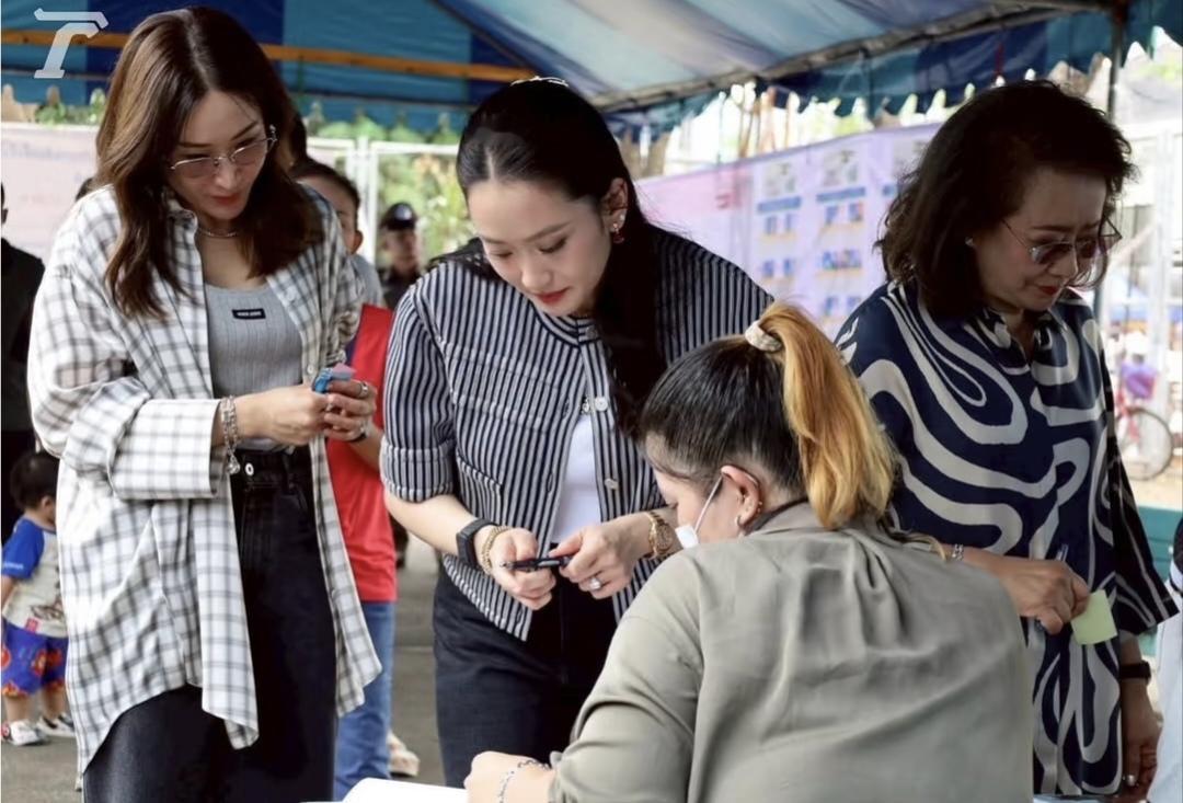 2月8日,西那瓦家族重要人物都出场了,参加了选举总理的投票活动!佩通坦夫妇,萍通塔夫妇及佩通坦的母亲现身投票现场,投下了宝贵的一票。西那瓦女士们个个时尚,优雅,尤其佩通坦姊妹在人群中是那么出挑儿,散发着青春活力,太迷人了! 佩通坦虽然只是前总理,但是,她的人气依然很旺。当她出现在现场时,所有镜头都对准了她。她和喜欢她的粉丝们合影留念,真亲民啊。 佩通坦一出现,现场永远是那么热烈。西那瓦家的优秀儿女,沉淀沉淀,未来卷土重来也是可能的!