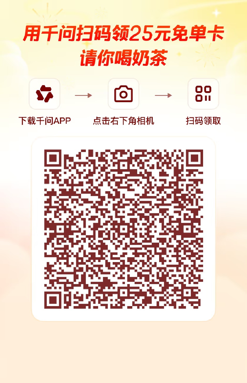 千问 大惊喜驾到!千问APP今日正式开启“30亿请客全国人民吃喝玩乐”活动,第一波福利直接拉满,人人都有份!过年囤年货,用千问APP点生鲜、盒马,超方便。现在下载千问APP,在上面完成点单操作。点赞评论参与抽奖!中奖后私信博主晒出你分享千问的二维码或安装千问APP的截图。我将在评论区抽取5位幸运小伙伴,每人送上25元红包,让大家快乐置办年货!快来参与,一起薅羊毛! 抽奖时间:2026年2月8号晚上11点整