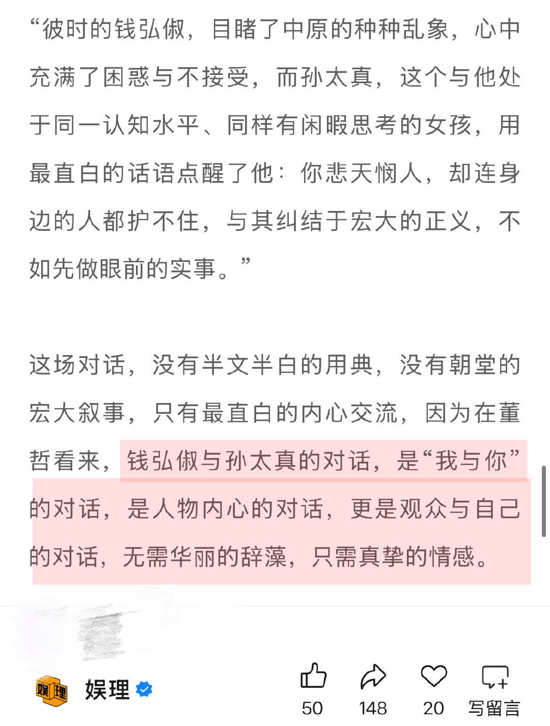 太平年编剧谈历史正剧创作边界 太平年编剧说五代十国没人能躺平 在《太平年》编剧董哲的笔下,钱弘俶不是天生的明君,而是在乱世中被迫成长、不断蜕变的年轻人。他的成长是故事的情感主线,不仅藏着千年前的乱世抉择,更藏着对当下年轻人的情感关照,“五代十国,是一个任何人都没有躺平机会的时代。”娱理独家↓