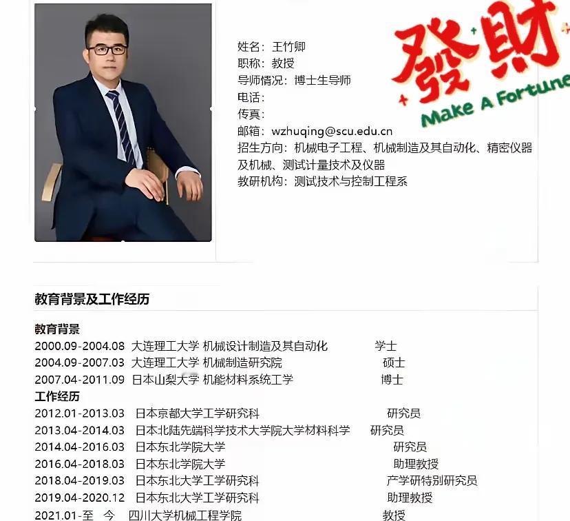 董明珠说的没错,四川大学的王竹卿事件令人困惑不已。 一个在国外普通大学当助教的