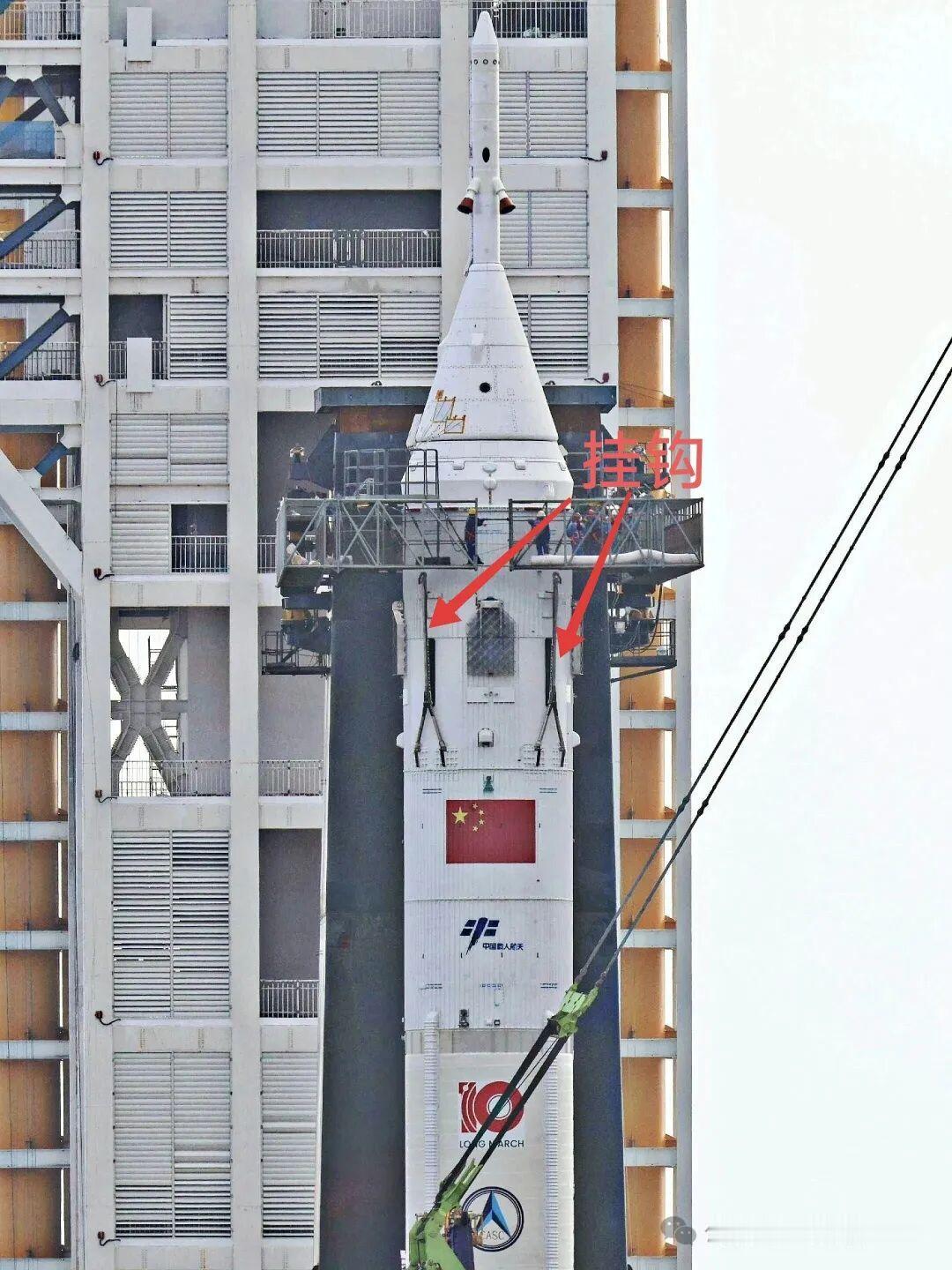 最新长征十号火箭上有“挂钩” 看来这次长征10火箭低空飞行试验,要进行网系回收