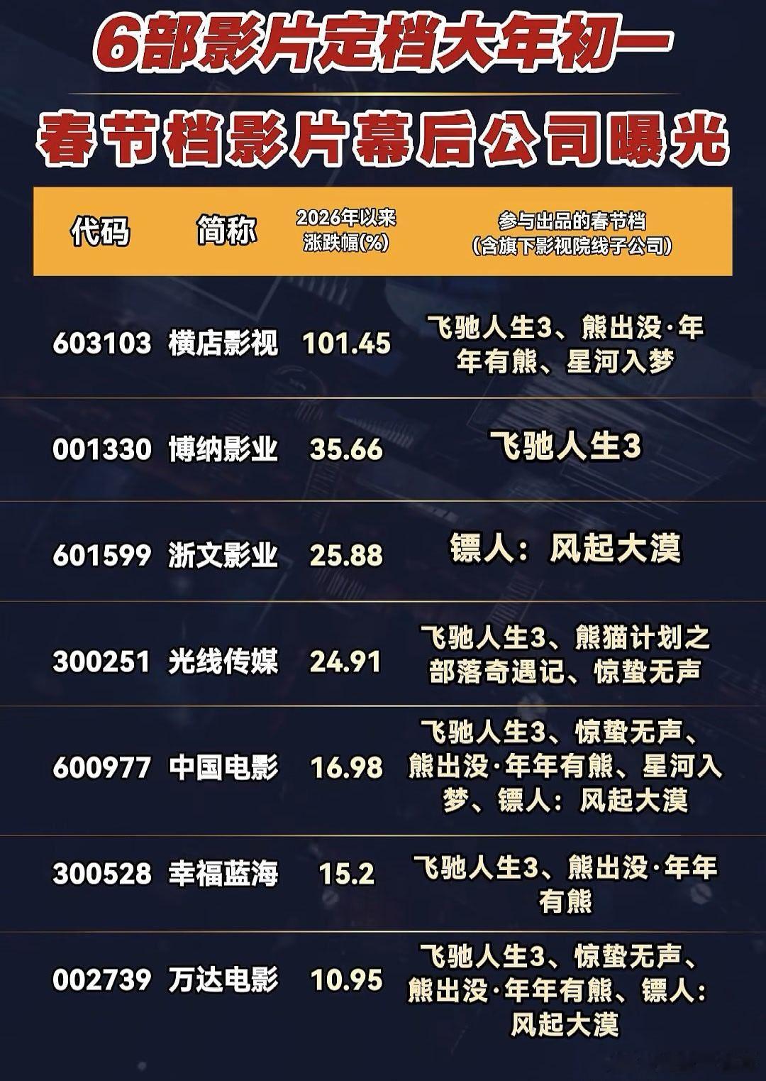A股春节档影片,幕后公司名单