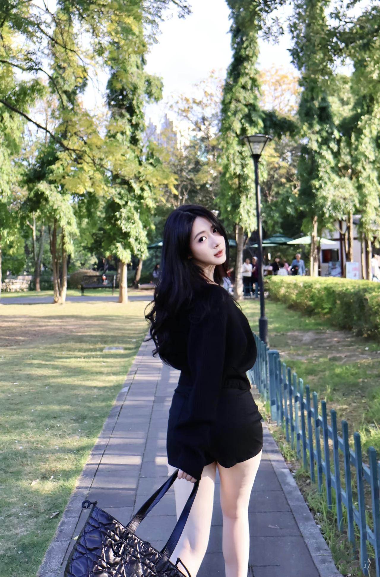 美图欣赏,看图写诗,情感解读 《林间墨影》 婉约古风: 墨衣轻曳林间路, 笑靥惊飞叶底风。 不借春红添秀色, 一身清冷胜芙蓉。 现代诗意: 黑色针织衫裹住午后的风, 阳光穿过叶隙, 在肌肤上落下碎金。 你回眸的瞬间, 整个公园因你而更美。 清丽短句: 晴光漫过林道,衣袂沾了树影。 你的笑,是风里最独特的诗。 情感解读: 她一袭黑衣,立于晴林之间,气质清冷而不失明艳。其美不在张扬,而在松弛的姿态与慵懒的笑意中,自有一番摄人心魄的韵味。 这份不刻意的性感与从容,恰如林间掠过的晚风,让人在不经意间,便沉醉于她独特的魅力之中。 治愈系 图片来源于网络,侵删