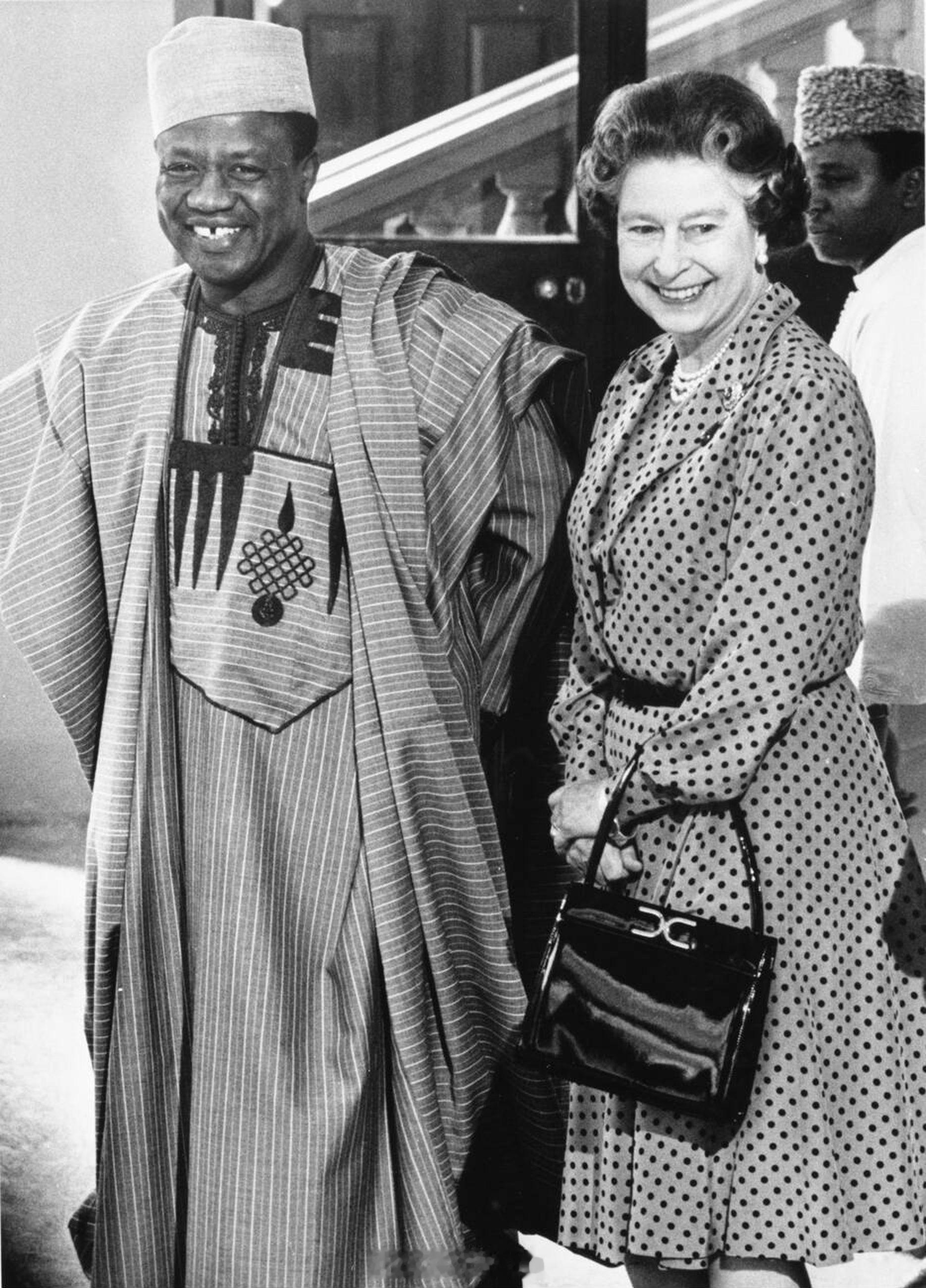 1989年5月12日,伊丽莎白二世女王在白金汉宫送前来辞行的尼日利亚总统Ibrahim Babangid离开🇳🇬她生前曾主持过3️⃣次尼日利亚国事访问,时间分别是1973年、1981年和1989年。