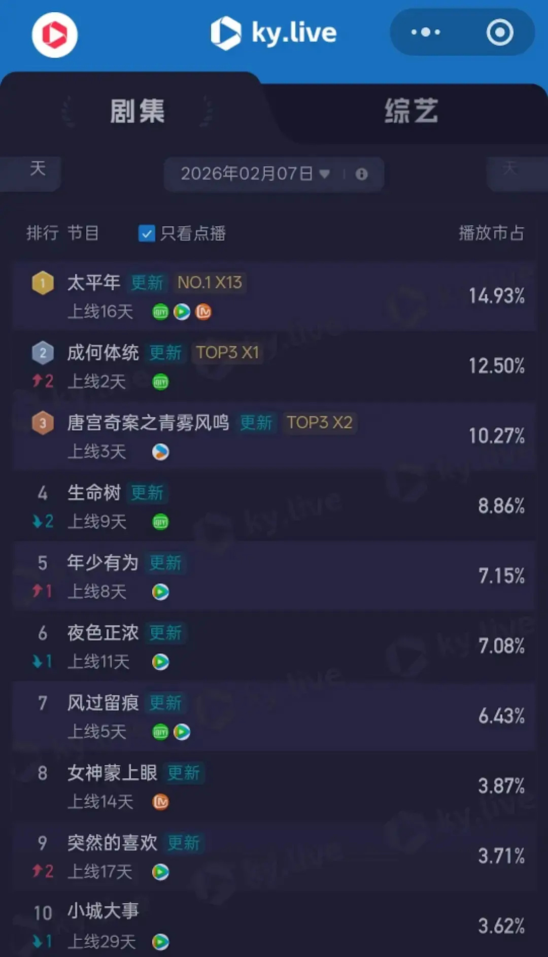 成何体统今天已经酷云第二了!太平年还是第一,感觉明天肯定登顶了