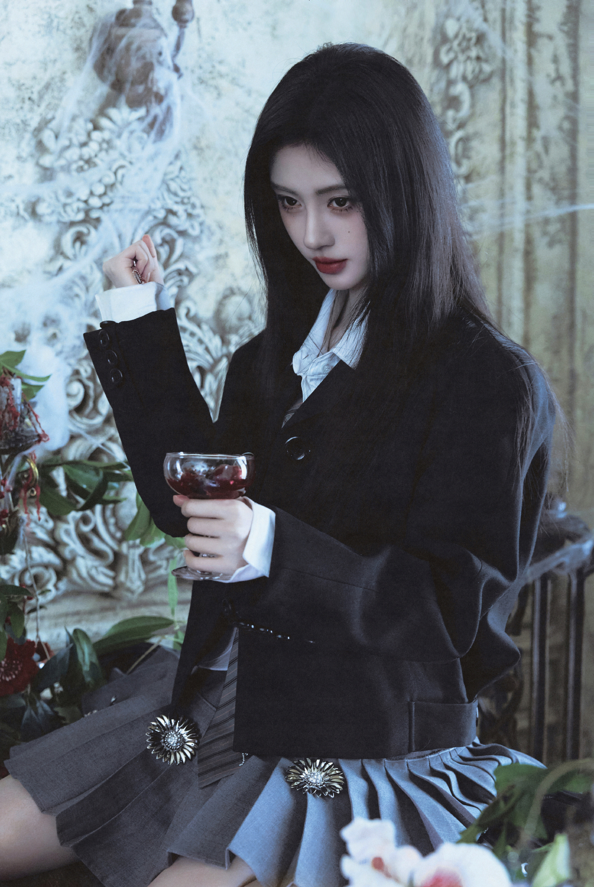 鞠婧祎物料拍摄花絮,暗黑风好病娇学姐啊!!!!