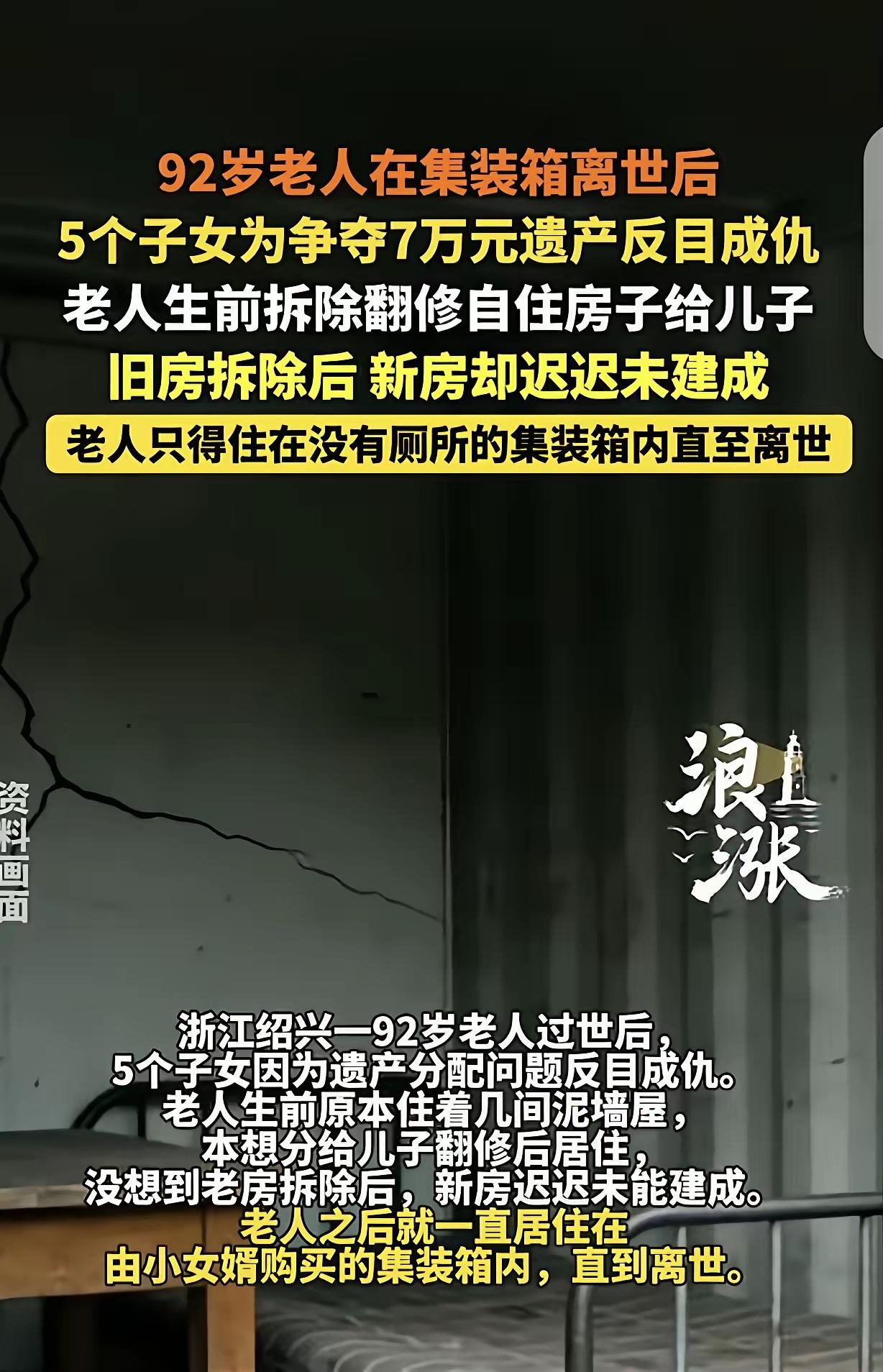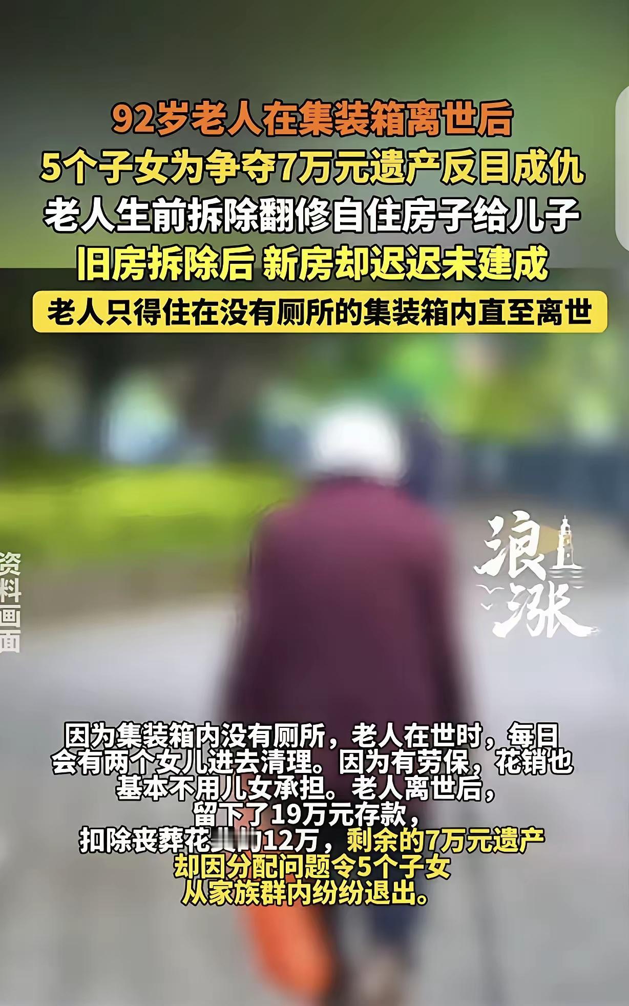 这则事件反映了当今社会一些家庭中亲情与金钱之间的矛盾,也引发了广泛的思考。以下是我的看法: 养儿防老的观念需要调整:传统上,人们相信“养儿防老”是确保年迈父母养老的保障,但现实中,亲情并不能仅靠血缘和物质利益维系。家庭成员的责任感和孝心更为重要。 孝道的缺失:老人一辈子省吃俭用,为子女付出,却没有得到应有的关怀与尊重,这是令人痛心的事情。孝顺不仅仅是物质的给予,更是精神上的陪伴和关怀。 物质利益的争夺破坏了家庭:老人死后留下的财产成为兄妹间争执的导火索,反映出家庭成员缺乏道德底线和良知。这不仅伤害了亲情,也让家庭关系变得破裂。 老人权益的保障:老人应有基本的生活保障和尊严。社会层面应加强对老年人权益的保护,提倡孝亲文化,减少家庭内部的金钱争夺。 反思家庭教育:家庭应重视对子女的道德教育,树立正确的价值观,让子女懂得感恩和珍惜亲情,而非只看重遗产和物质利益。 对老人应有更多的关爱:子女应在老人有生之年给予陪伴和照料,而不是等到老人去世后为了财产争得不可开交。 总结:家庭的和睦和亲情的纯粹远比金钱更重要。我们应反思自己在家庭中的角色,尊重和关爱父母,弘扬孝道文化,让亲情在真心和责任中得到守护。 如果你需要更深入的分析或建议,欢迎告诉我。对亲情的理解 亲情关系