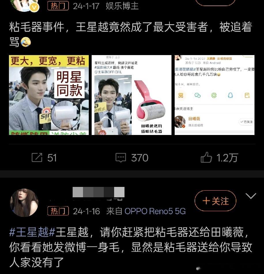 比如去年的王星越,受到了田曦薇送的三块五的粘毛器。