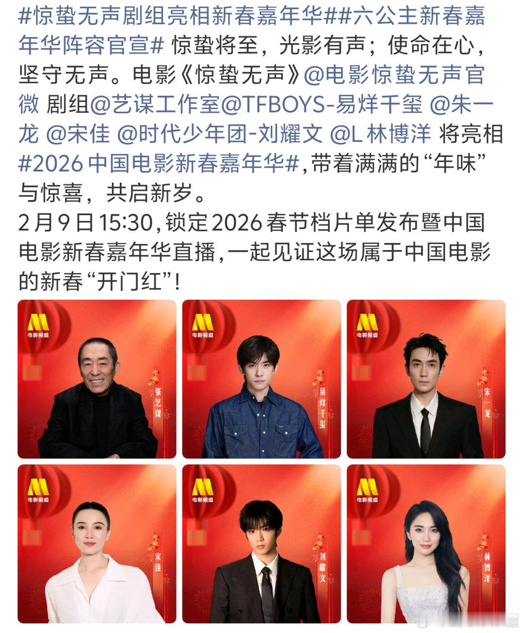 电影《惊蛰无声》剧组明天将亮相电影新春嘉年华,张艺谋、易烊千玺、朱一龙、宋佳、刘耀文、林博洋