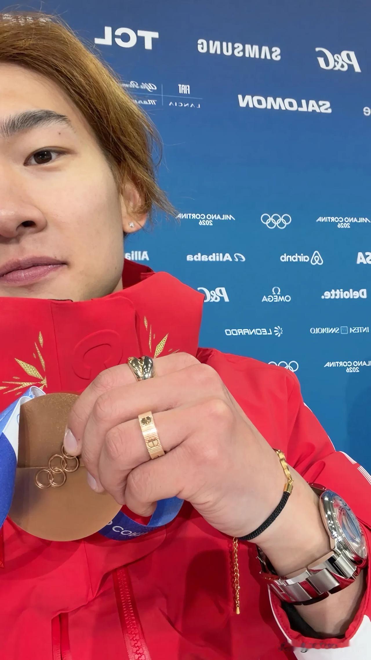 2月8日,苏翊鸣更新动态,并晒出10张比赛照片。 他获得了米兰科尔蒂纳冬奥会单板滑雪男子大跳台铜牌,遗憾未能成功卫冕,但已创造历史。 苏翊鸣发了10张照片,有一张是他与爸爸妈妈的合照,妈妈看起来像哭过一样。 苏翊鸣本来已经是一名演员,但为了心中热爱的冰雪运动,他果断选择了单板滑雪项目,希望他未来一切顺利。