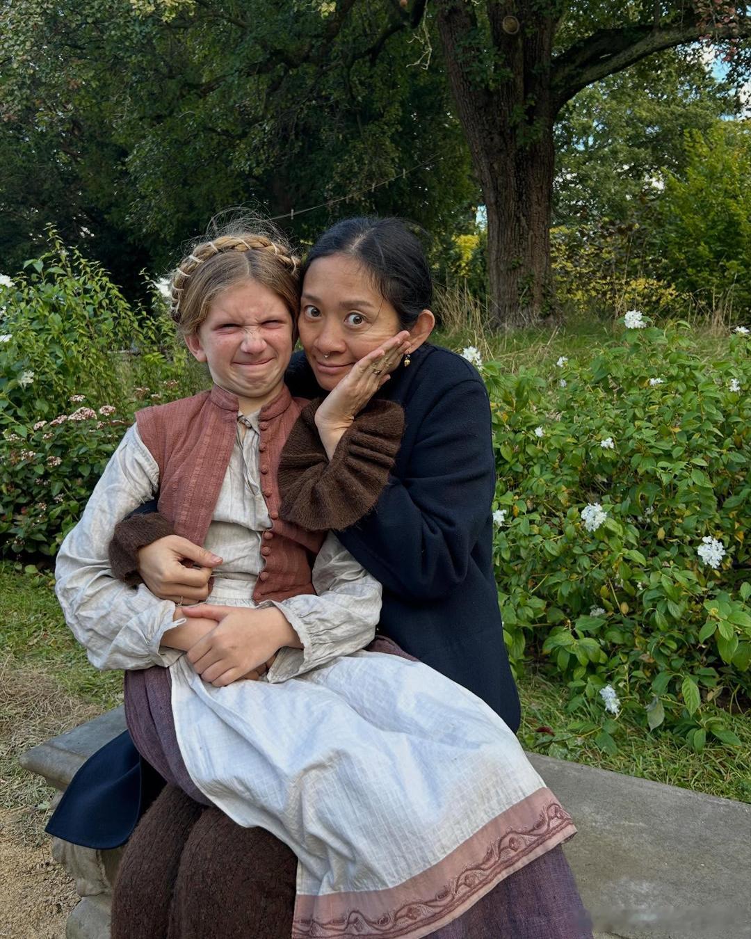 张天爱跟素人合影,胯真的好宽,大宅院似的