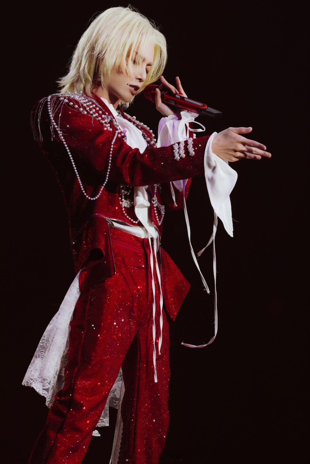 华晨宇星芒红宝石红色亮片承载璀璨星光,珍珠与碎钻错落点缀,化身具象的星芒红宝石,白金狼尾发型打破温柔边界,又野又贵气,动作间的张力尽显顶级歌手的舞台掌控力。