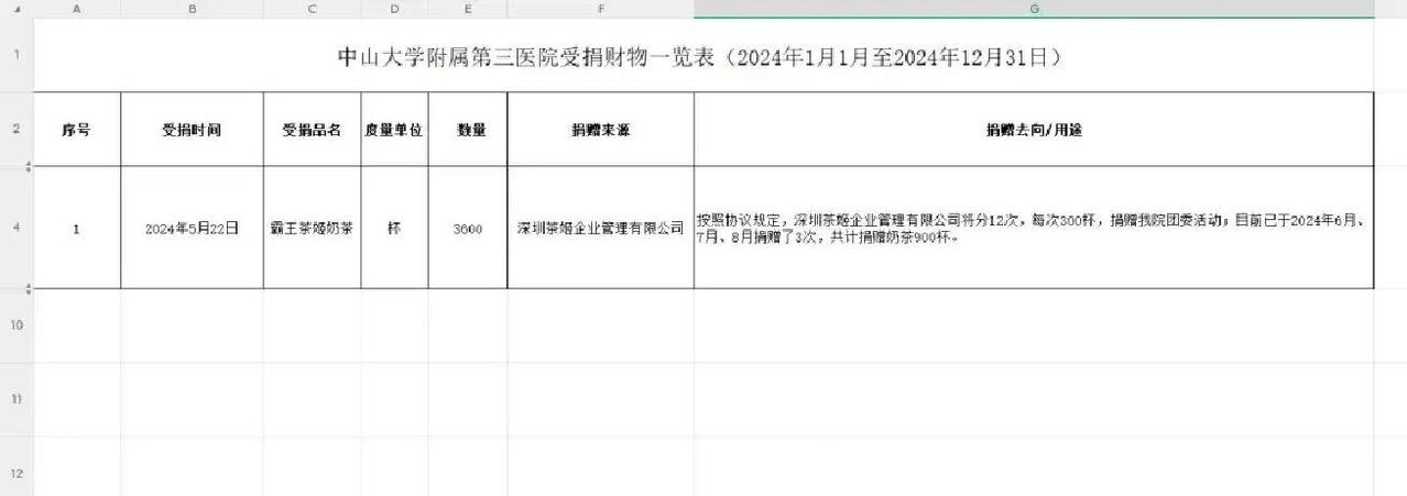 2024年5月,广州中山三院突然公示全年只收到一项捐赠,这事儿一出就让人觉得有点扎心。 其他大医院动不动就几百万上千万的捐款流水,中山三院却全年就霸王茶姬送来了3600杯奶茶,折算下来价值也没多少,简直成了最“清贫”的那一家。 这不是医院不缺钱,而是现实里很多机构捐款越来越挑地方,更愿意砸给名气大、曝光高的顶级医院,普通三甲反而难沾光。 奶茶虽然暖心,能让医护短暂解乏,但对比现金或设备支持,差距不是一点半点。 霸王茶姬这波操作更像品牌营销,顺手做了公益,实际帮医院解决不了核心问题。 医院发展靠真金白银的投入,靠这种零散小礼物远远不够,长远看捐款门槛越来越高,资源集中化只会更严重。 中山三院这一年“颗粒无收”现金的尴尬,恰恰戳中了当下公益捐款的痛点:好看不中用的捐赠越来越多,真能救急救命的钱却越来越少