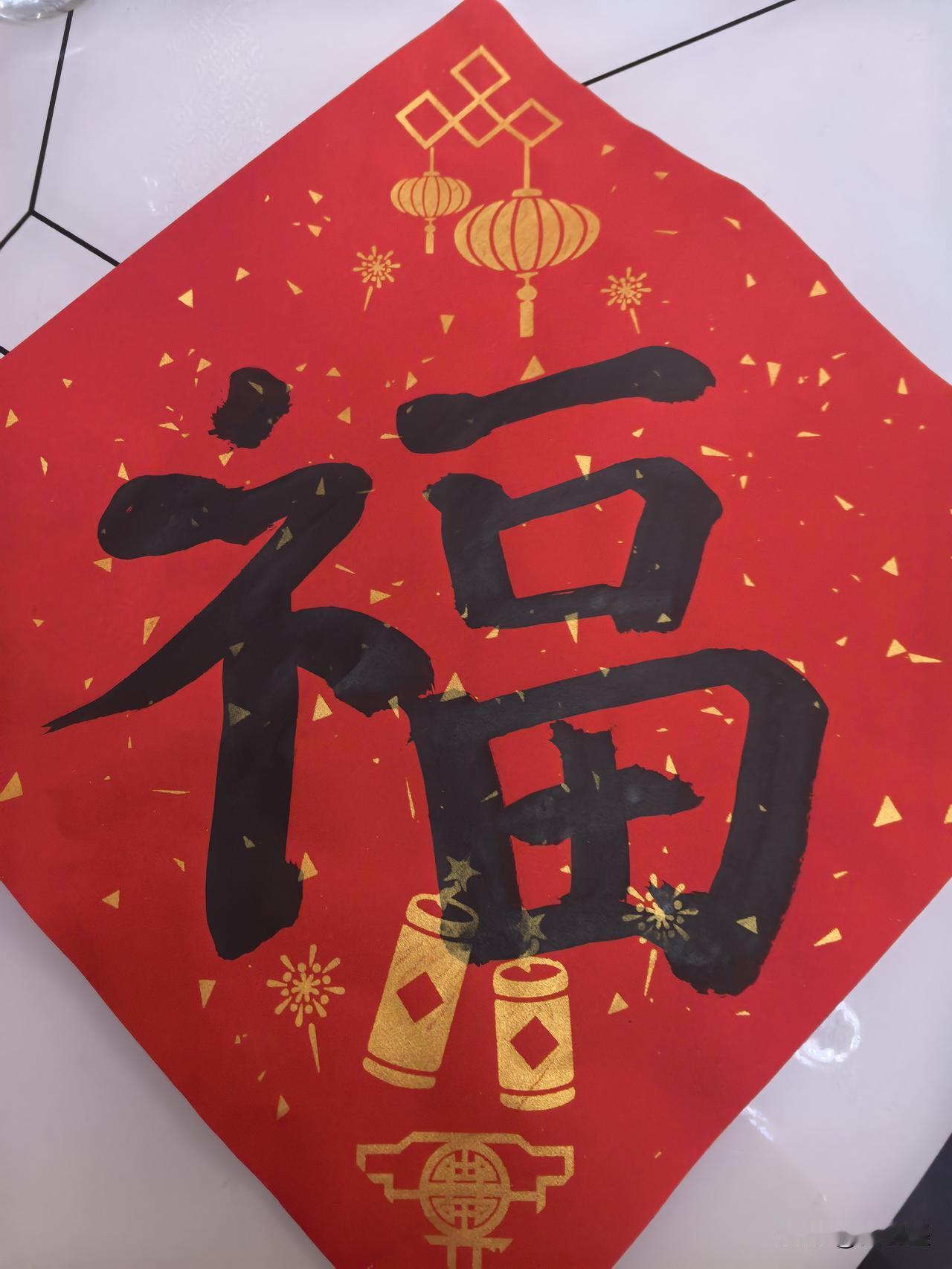 小区新年活动,自己写的“福”字,大家看看怎么样?时隔二十年没用过毛笔了[捂脸]