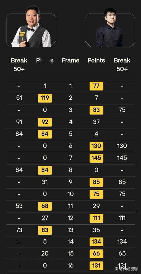 达仔已经尽力了,真的尽力了,赵公子5杆破百,4杆50+,连单杆最高分奖金都没给肖主播留下,以后还想吃面吗? 达仔全场打出6杆50+,一直追到6:7,奈何对面的怪物太强大了,后面几局完全没给机会啊。5进决赛夺5冠,决赛胜率100%,赵公子可以过个好年了,只是可怜了肖主播,没进决赛也躺枪了。