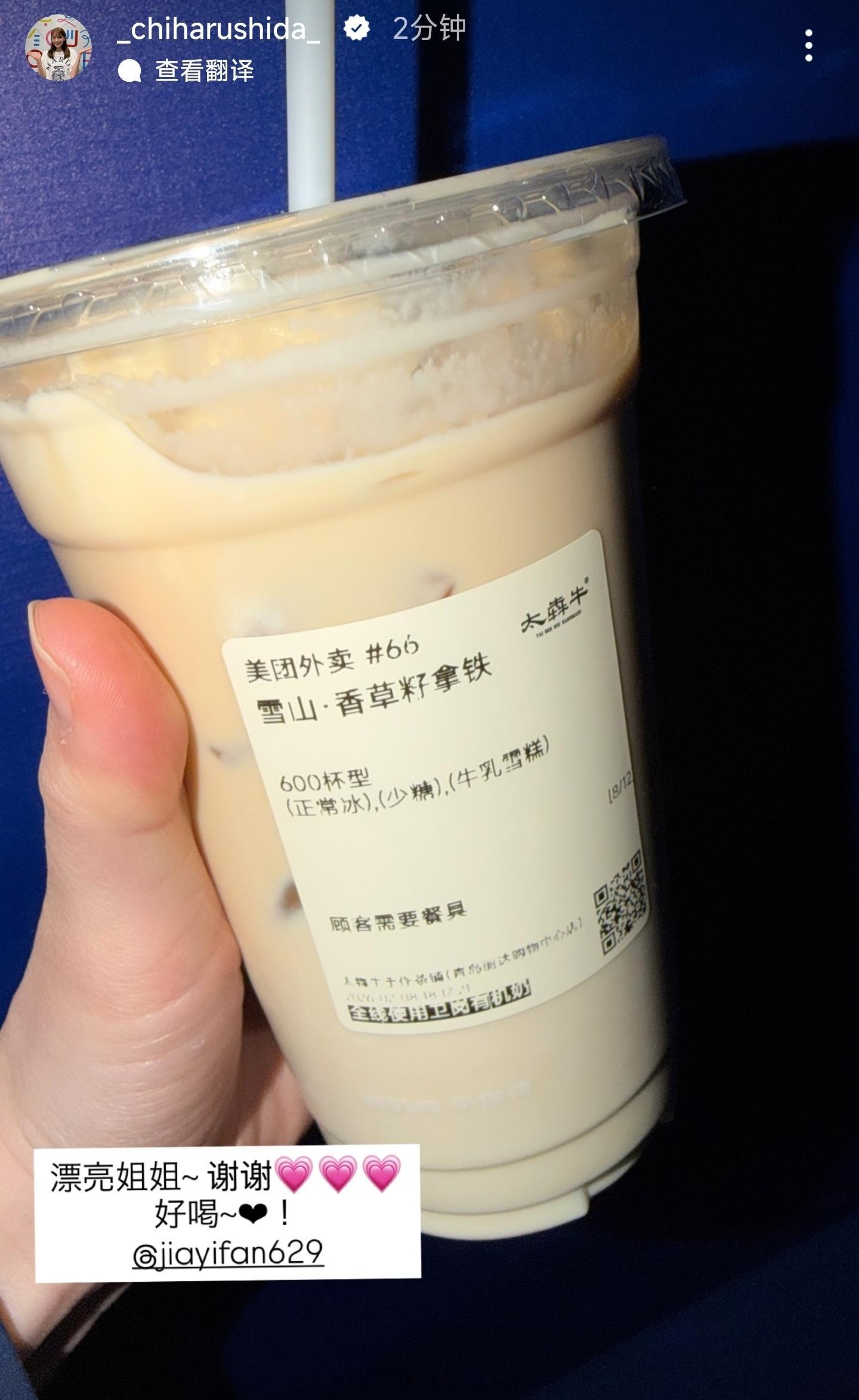 志田千阳感谢贾一凡投喂🧋