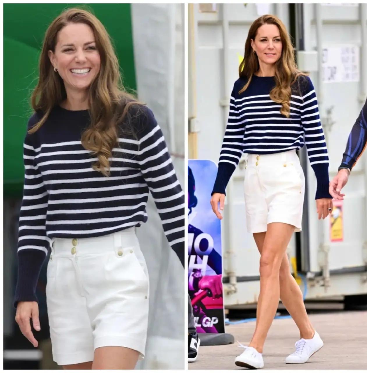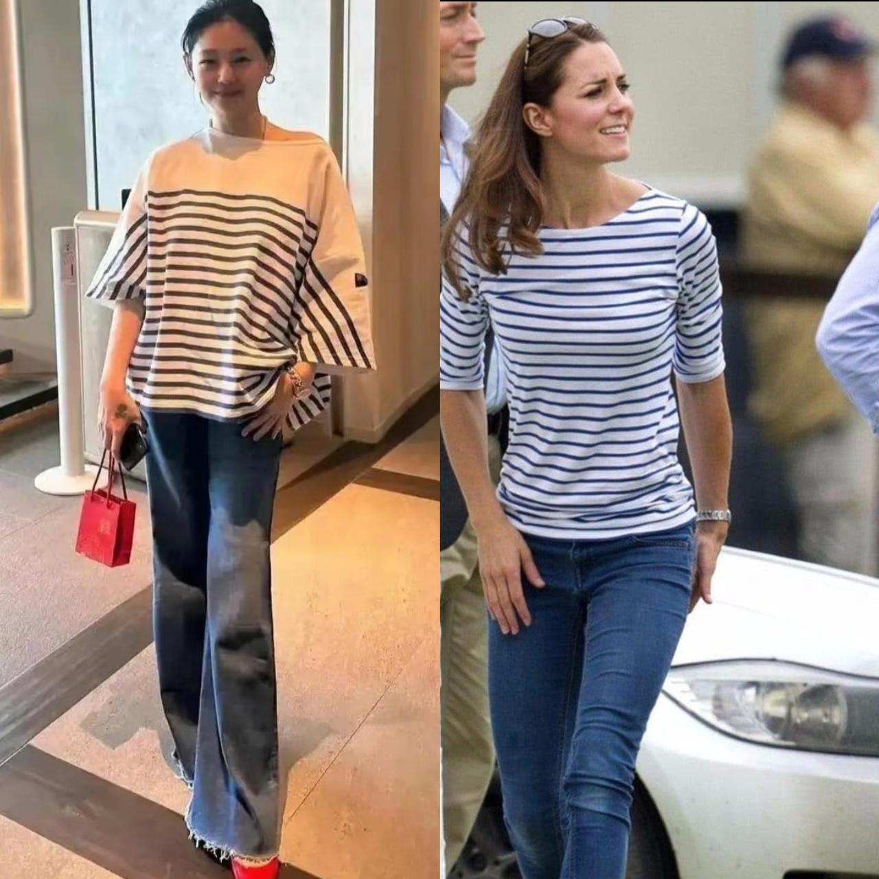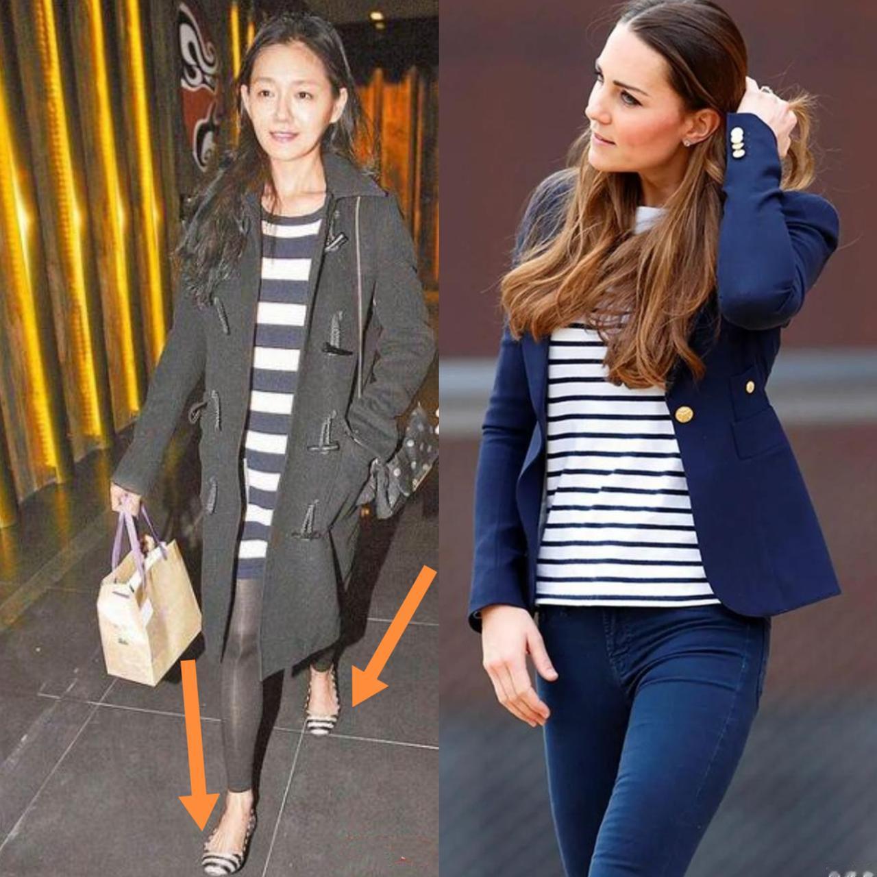 大S和英国凯特王妃以前都很喜欢穿上身黑白横条纹的衣服,搭配深色或深蓝色牛仔裤,两