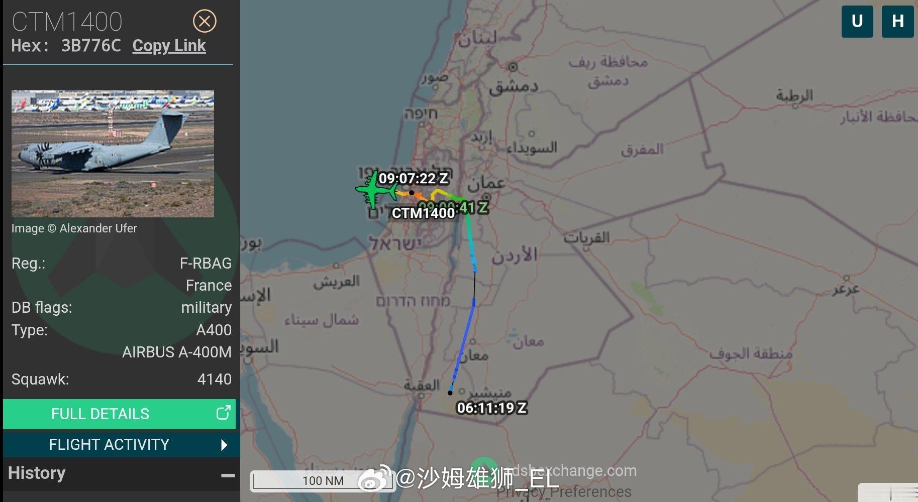 1、法国陆军的A400M运输机今天早上降落在以色列首都特拉维夫(这种情况并不常见)。