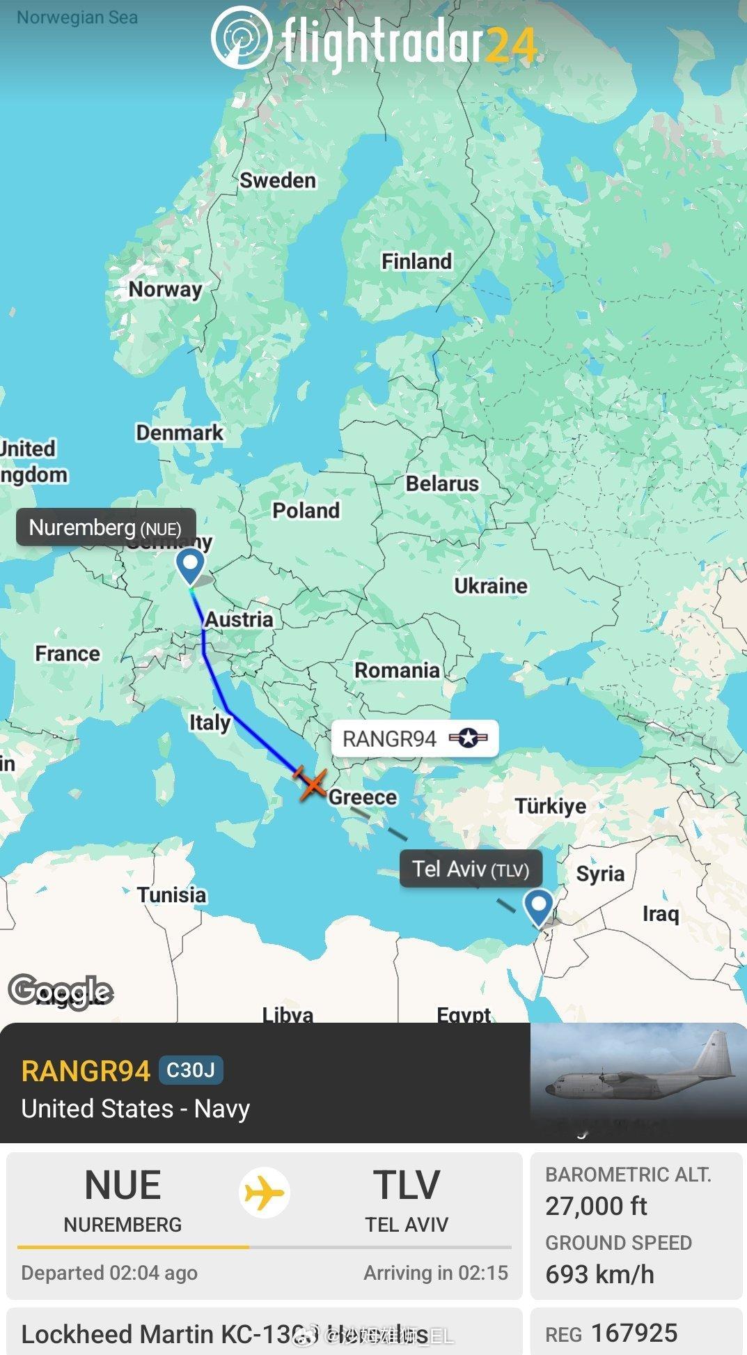 4、一架来自德克萨斯州沃斯堡联合后备基地的美国海军 KC-130J 加油机正前往特拉维夫。
