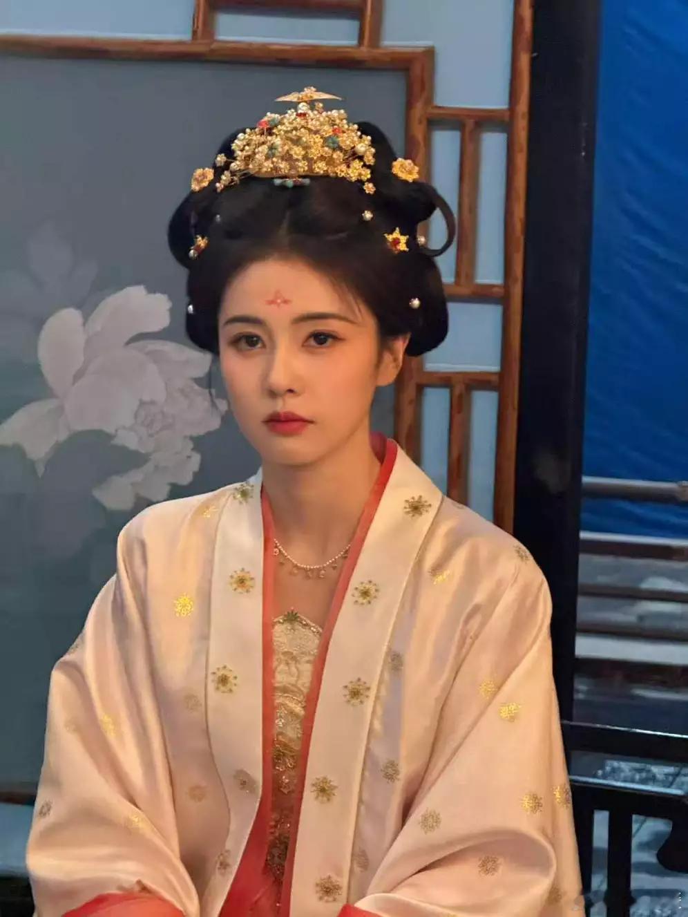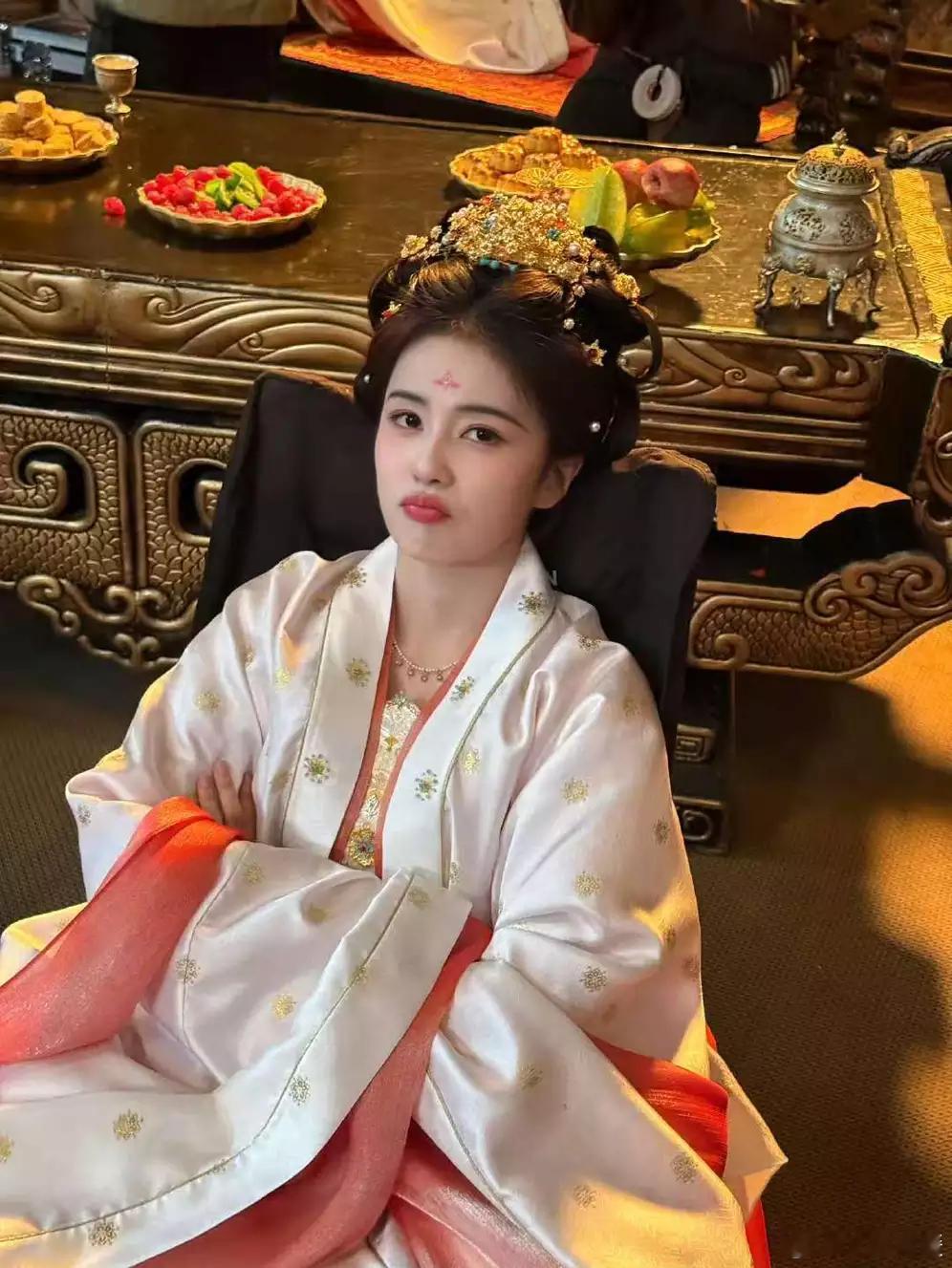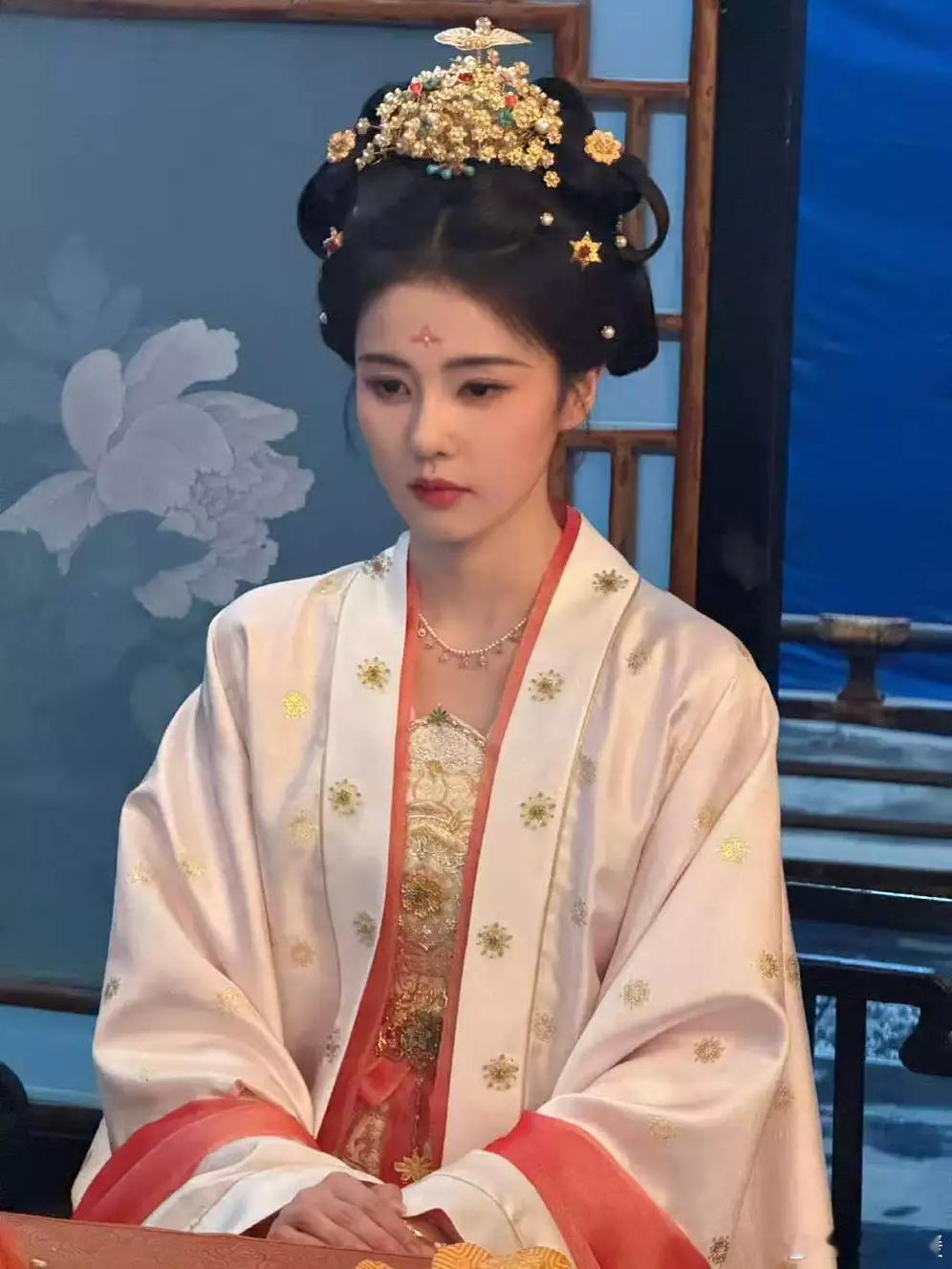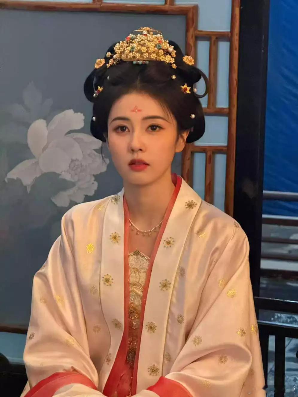 文亦娱乐白鹿穿唐制汉服配高髻金冠华贵温婉 红妆点额尽显国风之美