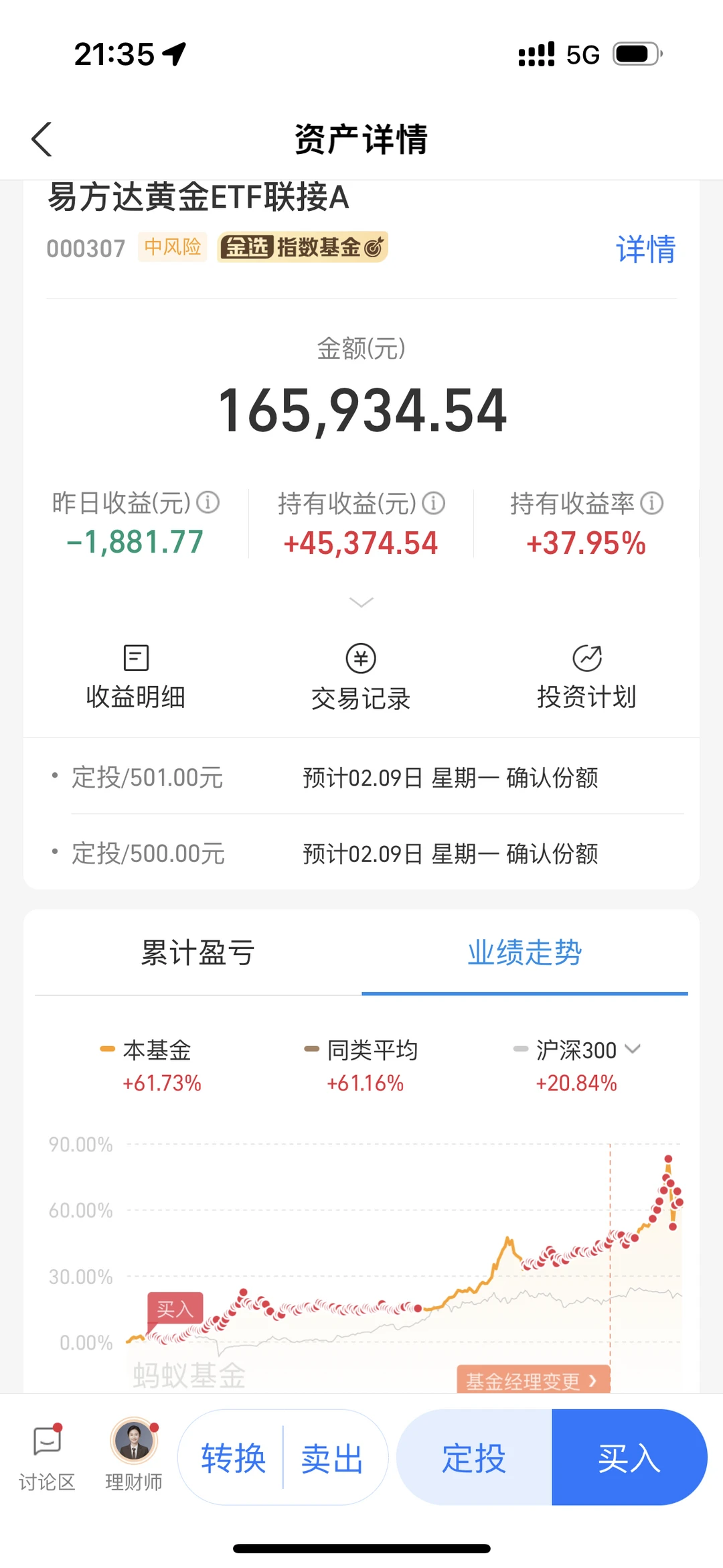 我个人的资产配置中,黄金目前还比较低,不到5%