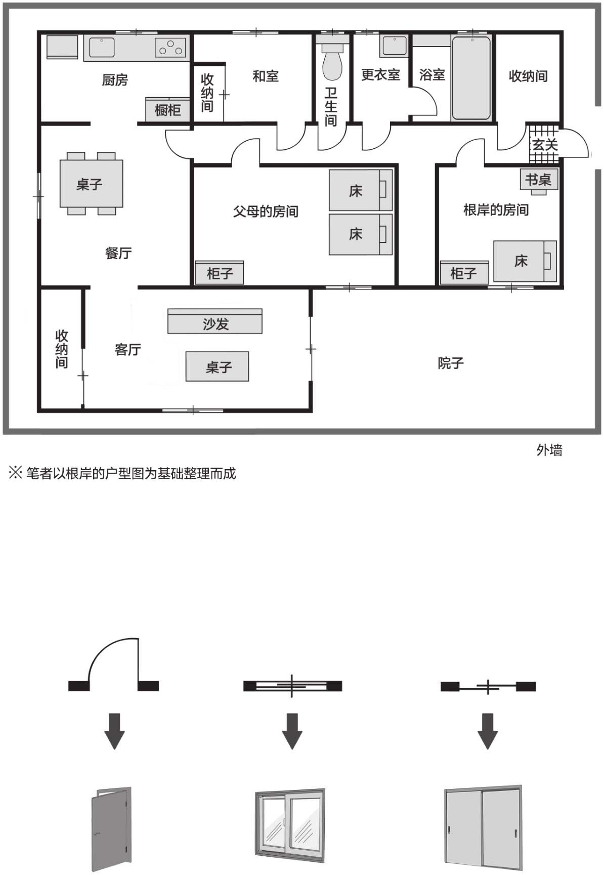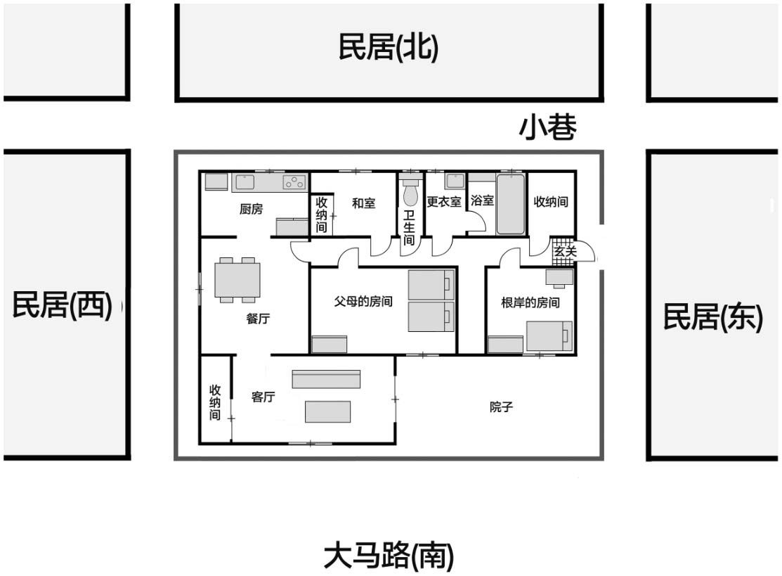 这本书从许许多多的“怪屋”中挑出了十一栋,收录了相关的调查资料。乍看上去,每份资料之间似乎并无关联。但仔细阅读,你会渐渐地从中发现一条线索。阅读时,请务必留心推理。资料①被封死的走廊①2022年6月10日、17日采访根岸弥生并进行调查的记录那天,我来到富山县的一家咖啡厅。一位女性隔着桌子,坐在我的对面。她名叫根岸弥生,是一位三十多岁的小时工,住在该县。我们在这里见面的起因,与她的小孩有关。根岸的儿子和树马上就七岁了。据说他有一天从小学的图书馆借来了一本《怪屋谜案》,封面上的户型图似乎引起了他的兴趣。但和树还不怎么识字,看大人的书有些困难,便让母亲读给他听。根岸与儿子约好,每天读一次,在睡前读十分钟,每个晚上在床前给儿子读书。她说,随着每天的朗读,自己孩提时的记忆逐渐苏醒。那是一段被她封印在心底的、令人不悦,甚至有些恐怖的回忆。根岸我老家的房子有一个地方不同寻常。但那个地方很久之前就被拆掉了,我也忙于当下的生活,没时间回忆这些……或者说,我是刻意想忘记。但读您的书时,那栋房子和母亲的事逐渐浮上心头……说到“母亲的事”时,根岸的神色明显暗淡下去。根岸从那以后,无论是做家务还是在外面打工,我满脑子都是那件事……于是我想,如果能和书的作者聊一聊,说不定会有意想不到的转机,便联系了出版社。虽说如此,我并不是期待您帮我揭开那件事的真相……只是觉得要是能和谁聊一聊,我或许就能从过去的诅咒中解脱。想必给您添麻烦了,十分抱歉。笔者不,没这回事。那本书出版后,很多读者给我讲了和房屋布局有关的故事。如今,“收集古怪的房屋户型图”已经成了我每日必做的功课。这次与您见面,也是每日功课的一部分。所以,我丝毫不觉得辛苦,反倒是根岸女士陪我做了我感兴趣的事。如果您也能因此放松一些,那简直是一举两得,我高兴还来不及呢。根岸您能这样说,我就轻松多了。根岸从手包中拿出笔记本,在桌上摊开。上面有一幅用铅笔手绘的户型图,能看出几处橡皮擦拭留下的痕迹。她说这幅图是她一点点挖掘有些模糊的记忆,反复修改画成的。根岸我的老家位于富山县高冈市的住宅区,是一间平房。这套房子住起来倒是没什么不方便的,但唯独这个地方……我从小就觉得很奇怪。她边说,边指着图中的一处。根岸您不觉得这条走廊没必要存在吗?笔者没必要存在……?根岸因为它是条死胡同啊。沿着这条走廊,走不到任何地方。如果没有它,我和父母的房间都可以建得更宽敞。小时候我一直很奇怪,为什么家里要隔出这样一块没用的空间。听她这样一说,我才意识到这块空间很有意思。若是用来收纳杂物未免太窄,两侧也没有门窗。“一条死胡同”……只能这样称呼它。根岸我以前问过父亲一次:“这条走廊是干什么用的?”不知道为什么,父亲当时似乎很着急,强行转移了话题。我不甘于自己的提问被忽视,于是有点儿撒娇似的缠着他问:“这条走廊到底是干吗的?”父亲很宠我,若是放在平时,早就告诉我了,可唯独那次,直到最后他也没有告诉我任何原因。笔者有关这条走廊,令尊是否有什么不方便说与人听的隐情?根岸我觉得是有的。这栋房子的户型图好像是父母和建筑公司的人商量设计的,所以父亲不可能对此一无所知。然而他却不肯告诉我……我怀疑他也许有事瞒着我。笔者顺便问一下,令堂对此是怎么说的?根岸我没问过母亲。也许应该说,是我问不出口……我和母亲的关系没有亲近到能轻松地向她提问的地步。说到母亲,根岸的脸上立时蒙上了一层愁云。根据我的经验,认识一栋房子不能只通过房屋户型图,还应该对住在房子里的人有较深的了解。直觉告诉我,根岸的母亲是解开房屋谜团的关键。笔者能和我讲一讲令堂吗?挑您方便说的内容就行。根岸……好的。在邻居和父亲面前,母亲是个开朗的人,却唯独对我十分严厉,几乎从没夸奖过我,还动辄因为一点小事对我怒吼。如果只是这样,或许还可以用“严厉的母亲”来概括她的为人,可有时候,她看我的眼神就像在看什么可怕的东西……我觉得,母亲似乎很怕我……或者有意躲着我。总之,她对我的态度绝不一般。笔者您和令堂关系不好,有什么具体的理由吗?根岸我不清楚。从我记事起,我们的关系好像一直如此,所以我理所当然地认为母亲讨厌我。但如今回忆起来,事情似乎没那么简单。因为除了对我严厉,母亲还表现出对我的过度保护。我是早产儿,小时候身体弱,因此母亲每天都会问我:“你有没有哪里不舒服?”“身上有没有哪里痛?”或者“你没到大马路上去吧?”笔者大马路?根岸对了,这一点也得和您说明一下。笔者大马路?根岸对了,这一点也得和您说明一下。根岸老家的南边是一条大马路。东、西、北侧建有民居,每座房子之间由狭窄的小巷连通。母亲对我说:“无论如何都不许到那条大马路上去,出门时要走小巷。”大马路的人行道很窄,说危险确实是危险的。可我家住在乡下,马路上的车也不是很多,我总觉得母亲有些担心过度了。但是坏了规矩就会挨骂,所以,我一向都听她的话。一方面严厉训斥女儿,一方面对女儿过度保护……这样的态度让我产生了一种猜测。根岸的母亲,是不是不知道应该如何疼爱女儿?世上有一类父母不懂得如何爱孩子。他们很认真,只是认真过了头,固执地认