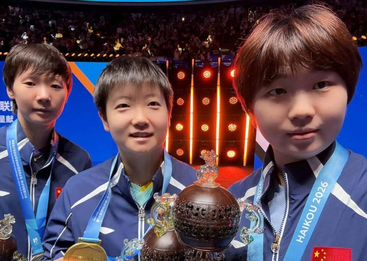 蒯曼也太可爱了[捂脸]! 你能看出来头摇的像拨浪鼓一样的蒯曼说的什么吗?[笑哭] 三面🇨🇳🇨🇳🇨🇳在2026海口亚洲杯赛场上冉冉升起,三个中国女孩莎莎、曼昱、蒯曼笑逐颜开,冠军、亚军、季军全属我们[赞][笑哭]! 颁奖仪式上,三个孩子一起合影自拍,可爱的小曼姐惊呼“好丑啊”[捂脸][捂脸]。 自拍照也出来了,不丑啊,都好看。小曼姐最可爱[赞][笑哭]!