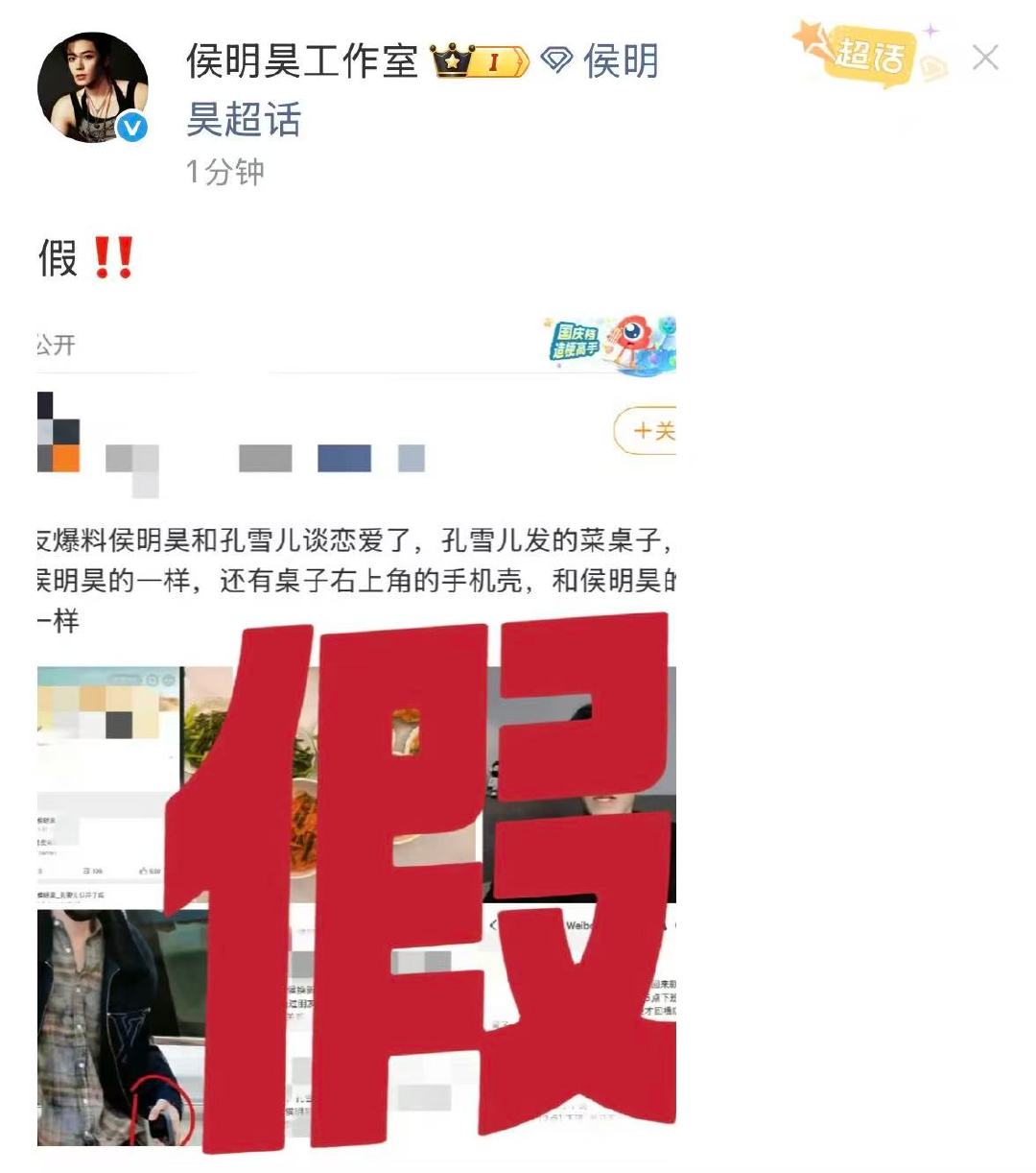 侯明昊工作室回应网传恋情侯明昊工作室打假网传恋情 侯明昊工作室回应网传恋情,假的