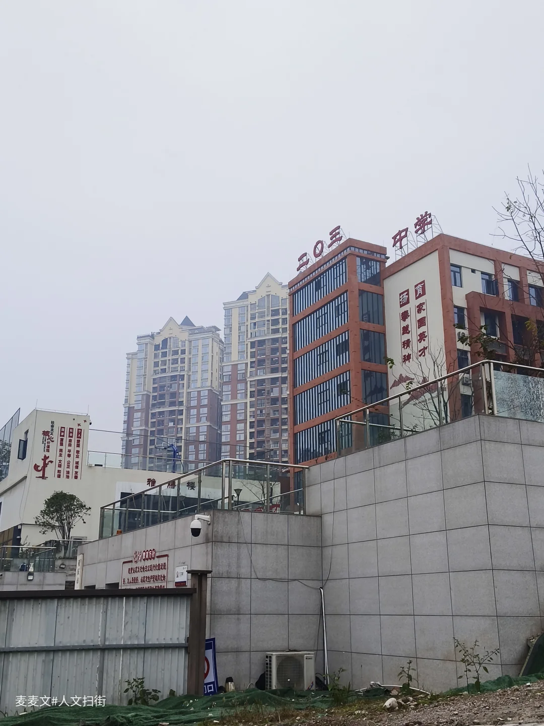 巷口几步路就是重庆203中学,这所1961年为国营江陵机器厂职工子女创办的军工子弟校,历经企业合并、公办转型,如今已是江北区重点中学。新教学楼在老社区旁拔地而起,红墙与老巷的对比,成了工业记忆与城市新生的对话。